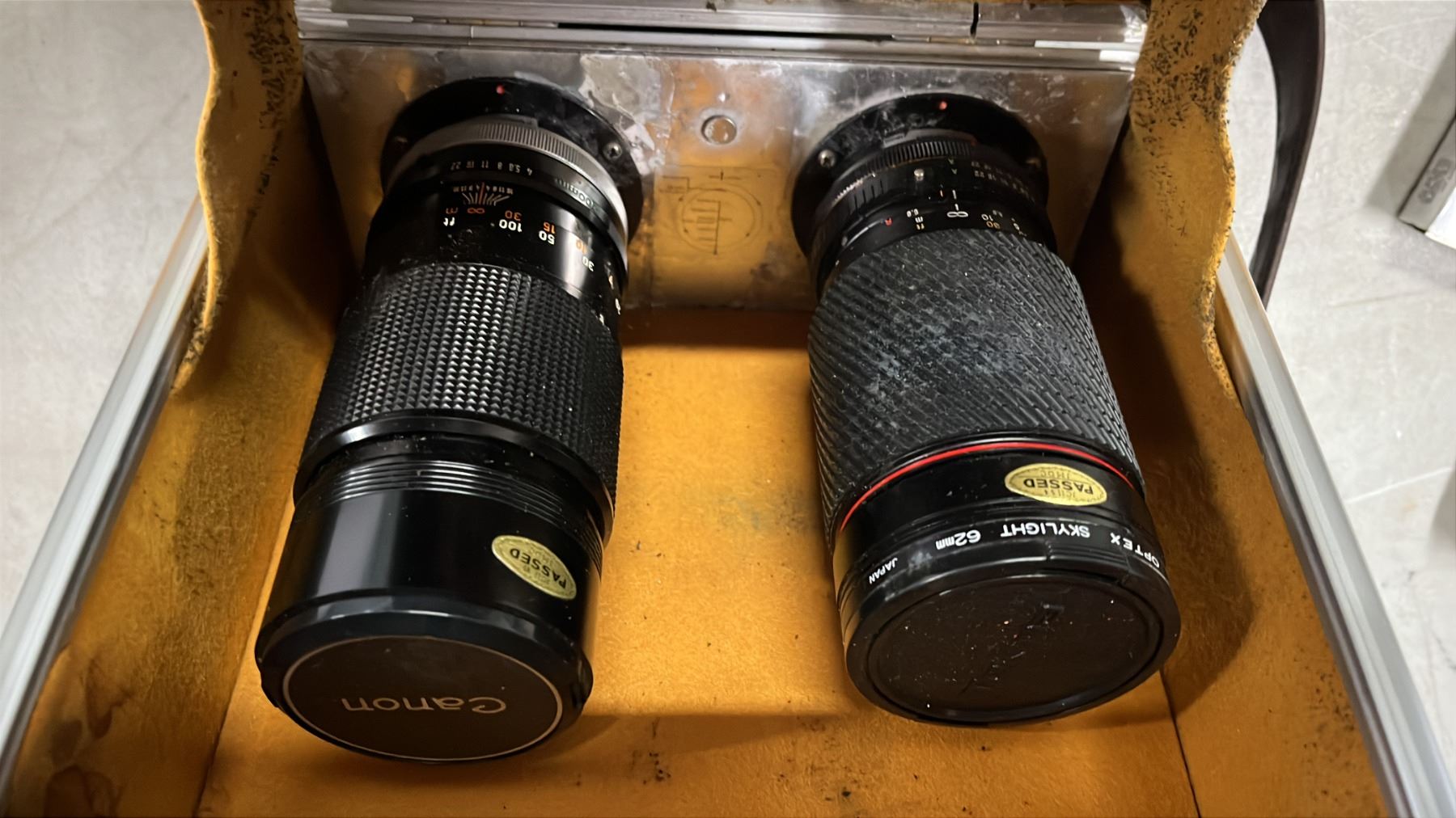 VINTAGE KITSTAR CAMERA CASE WITH 2 LENSES, 52 MM FILTER & 35 MM PINHOLE LENS