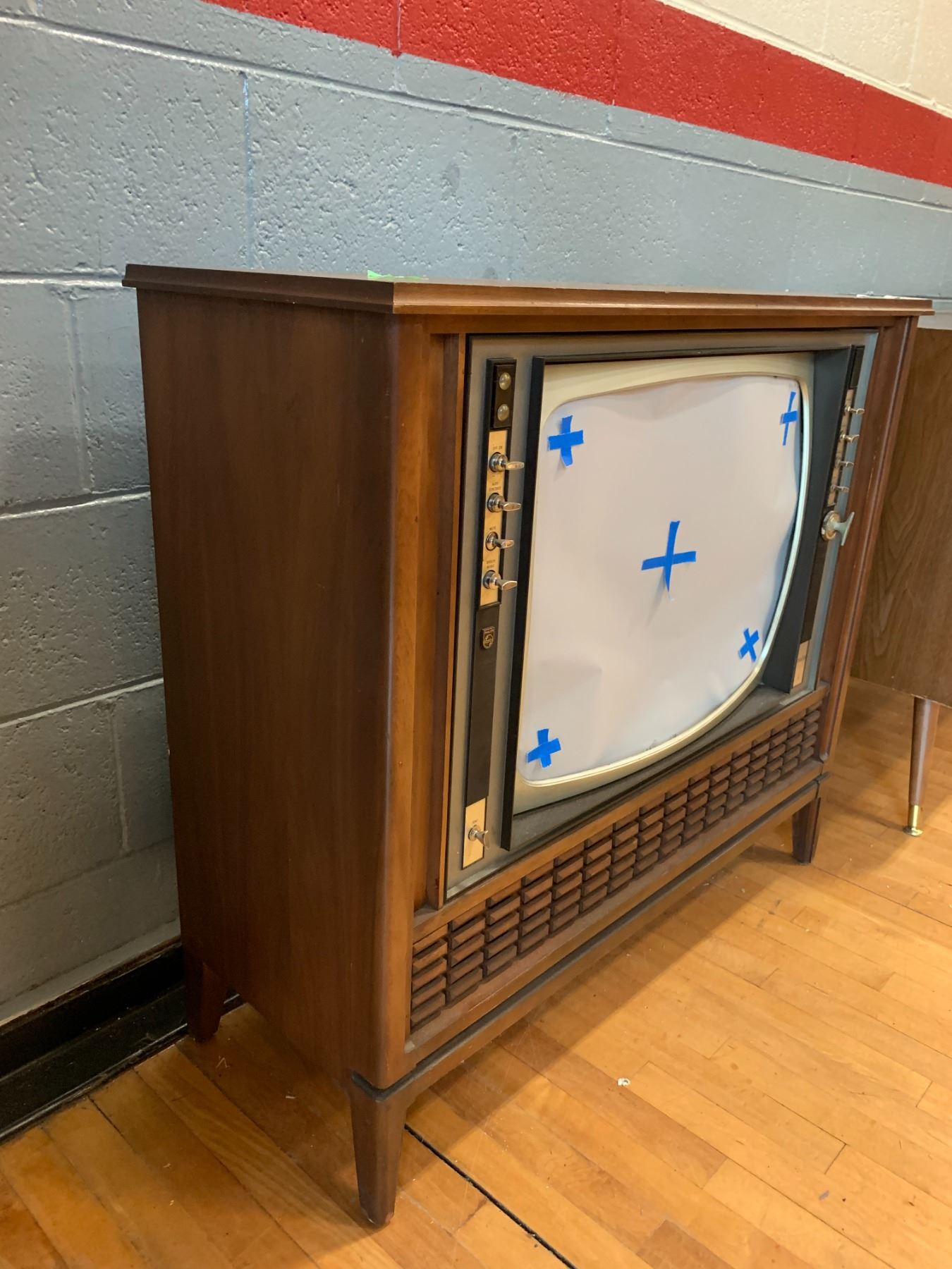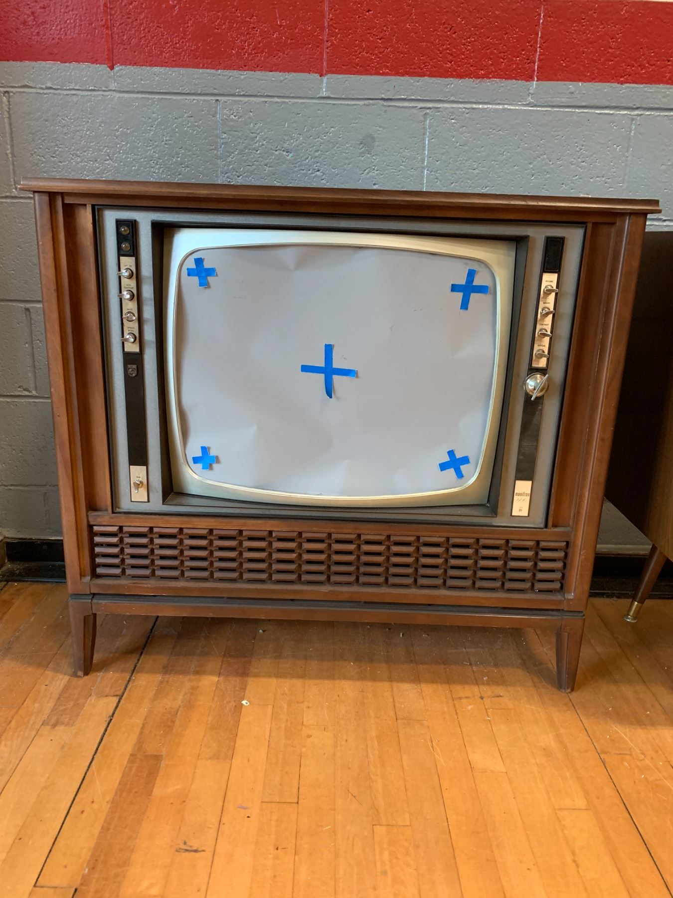 VINTAGE MONITRON TELEVISION BOX APPROX 32"X35"X14"