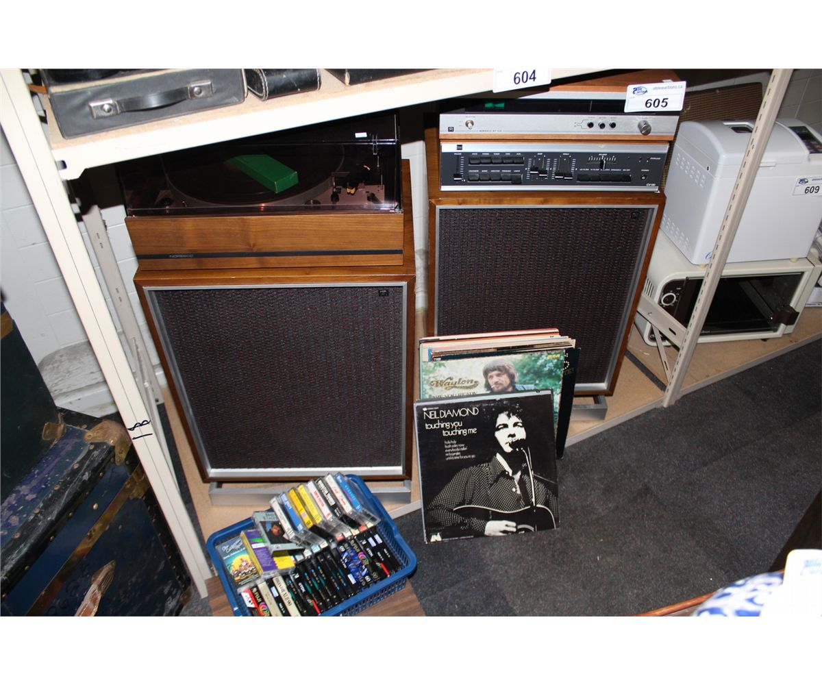 VINTAGE NORESCO TURNTABLE, SPEAKERS, DUAL CV120 PLUS COLLECTION OF RECORDS AND CASSETTE TAPES