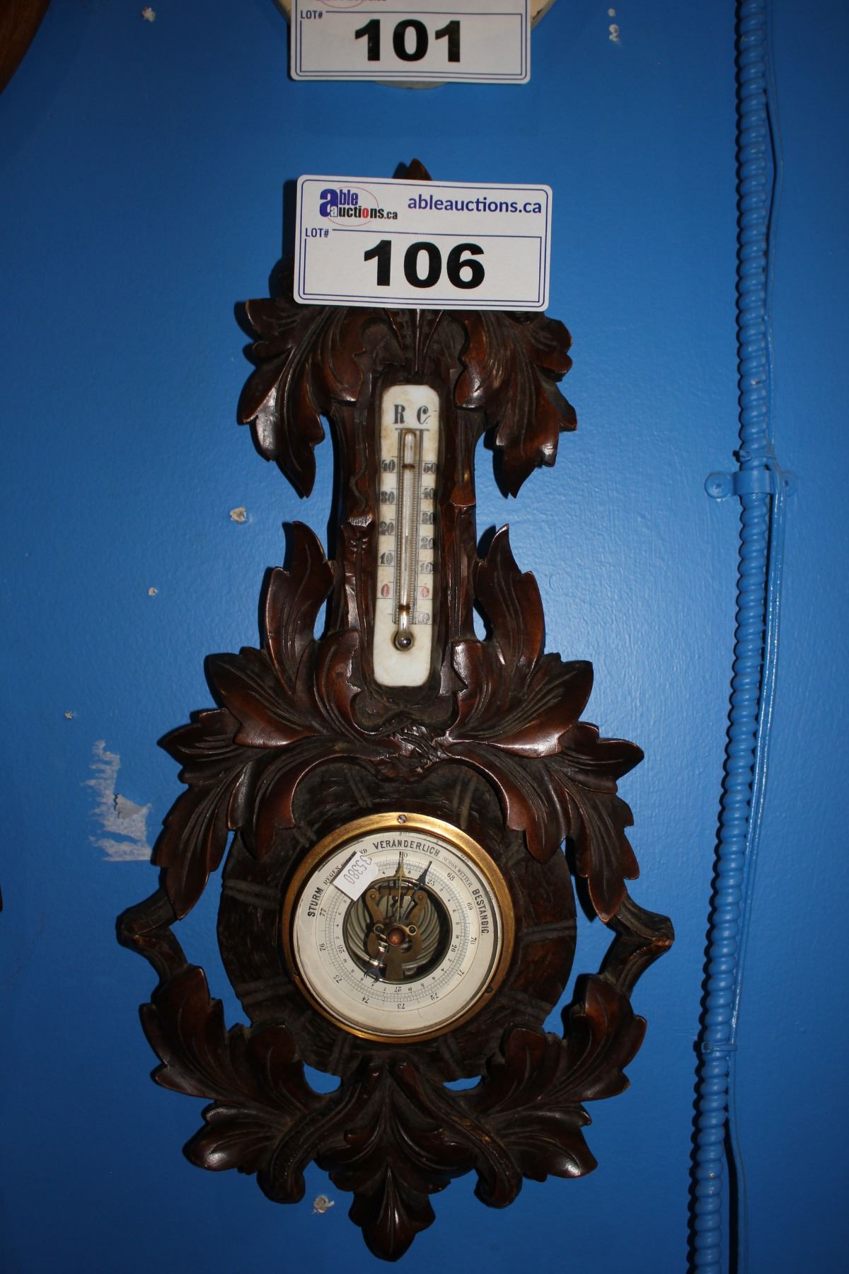 VINTAGE ORNATE CARVED BAROMETER & THERMOMETER