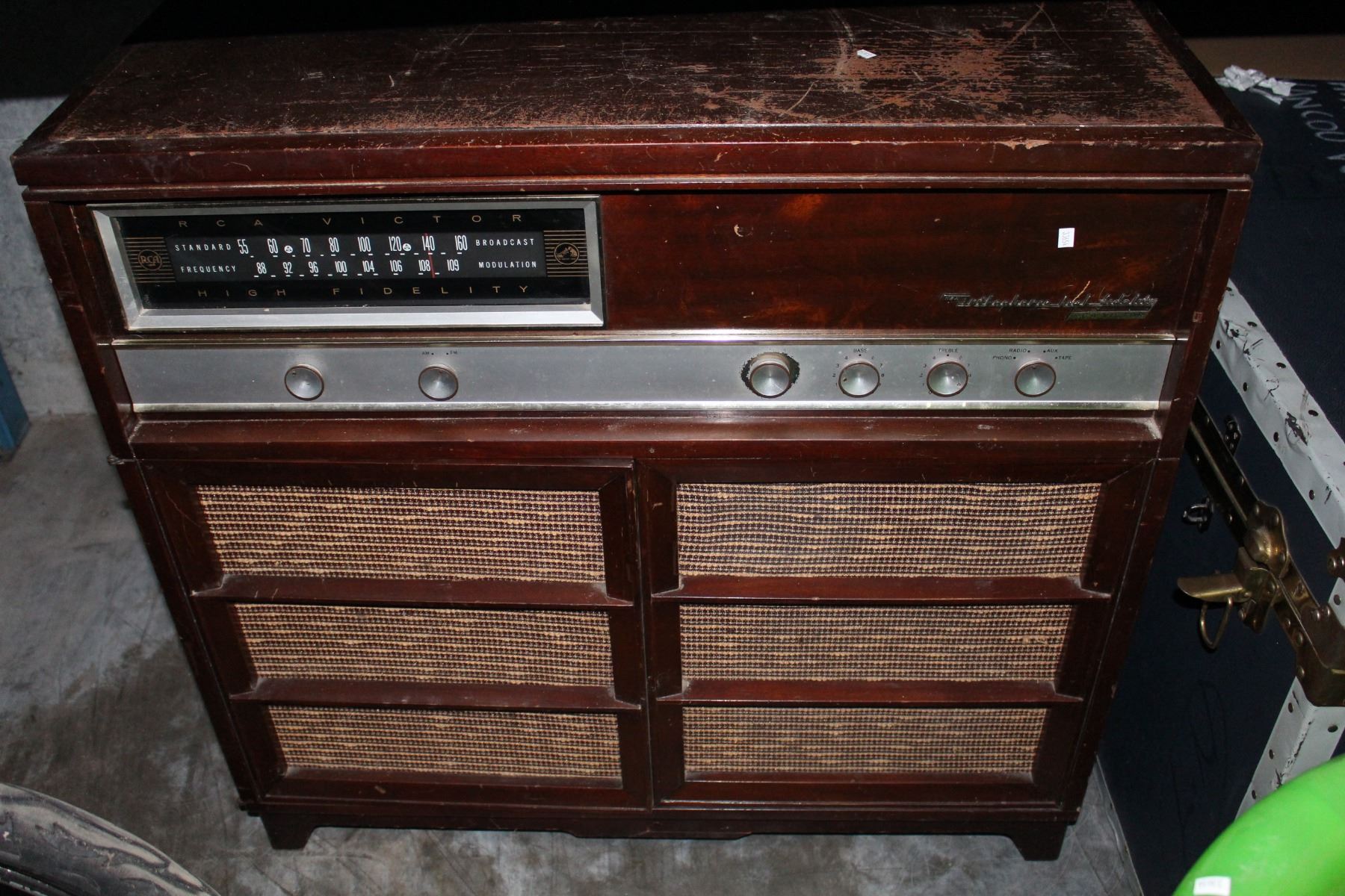 VINTAGE RCA VICTOR RADIO AND OUTDOOR PATIO CHAIR