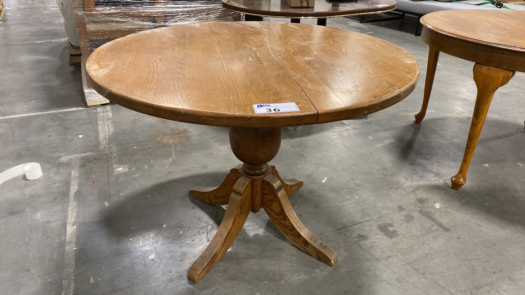 VINTAGE ROUND 30"H WOODEN DINING TABLE - APPROX. 41 1/2" DIAMETER