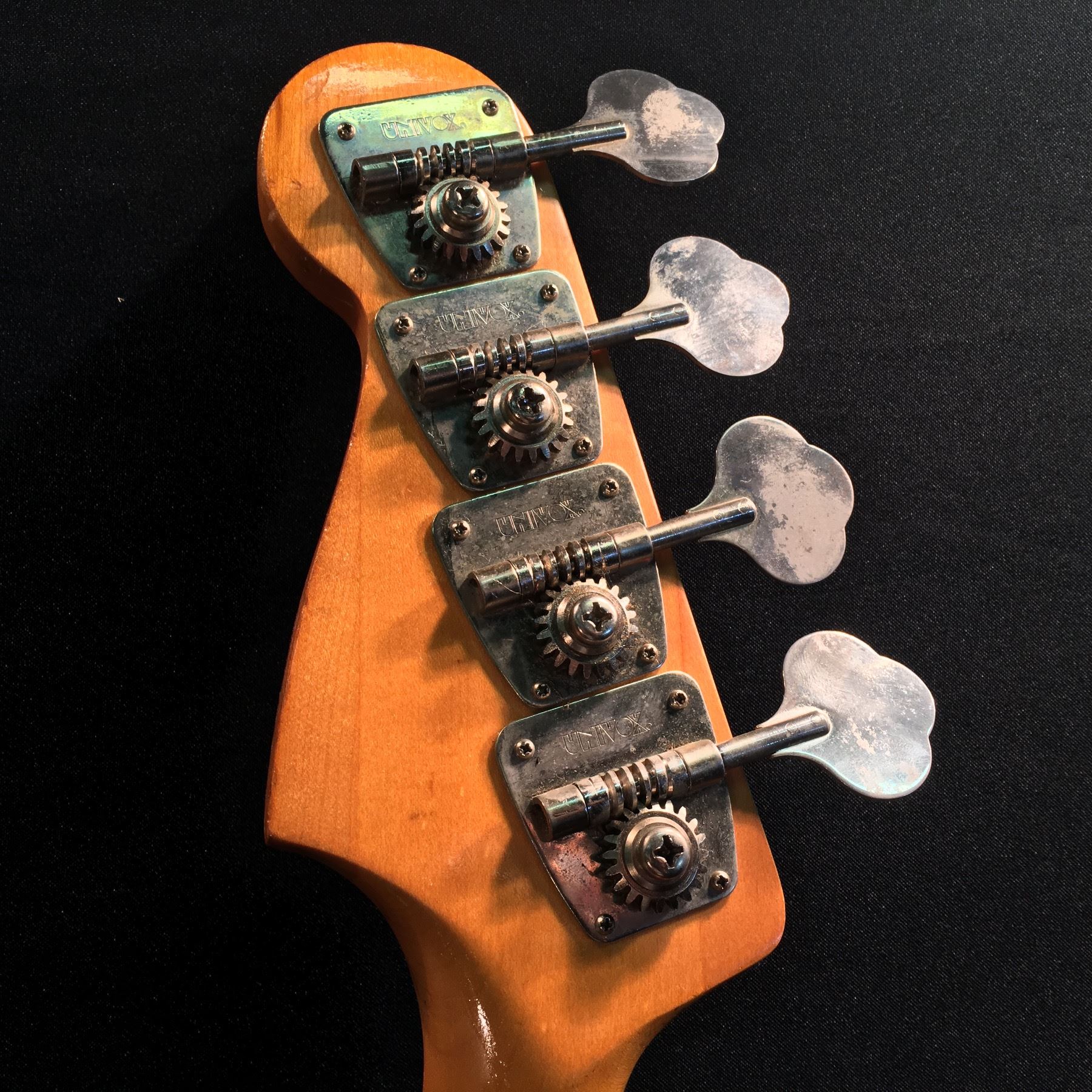 VINTAGE UNIVOX BICENTENNIAL 1976 LIMITED EDITION CUSTOM EAGLE CARVED J-BASS TYLE BASS GUITAR, WITH SINGLE PICKUP, VOLUME AND TONE CONTROLS, BRIDGE COVER, MADE IN JAPAN, SERIAL NUMBER 032575, COMES WITH HARD SHELL CASE