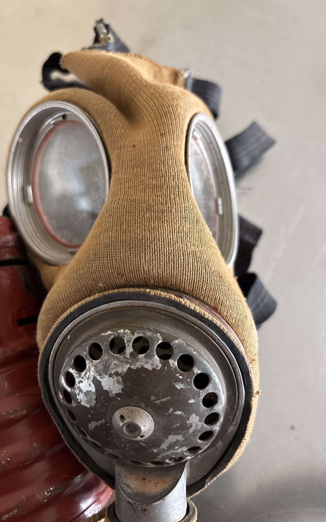 VINTAGE WW2 (1941) GAS MASK C/W HOSE, CANNISTER AND ID TAG