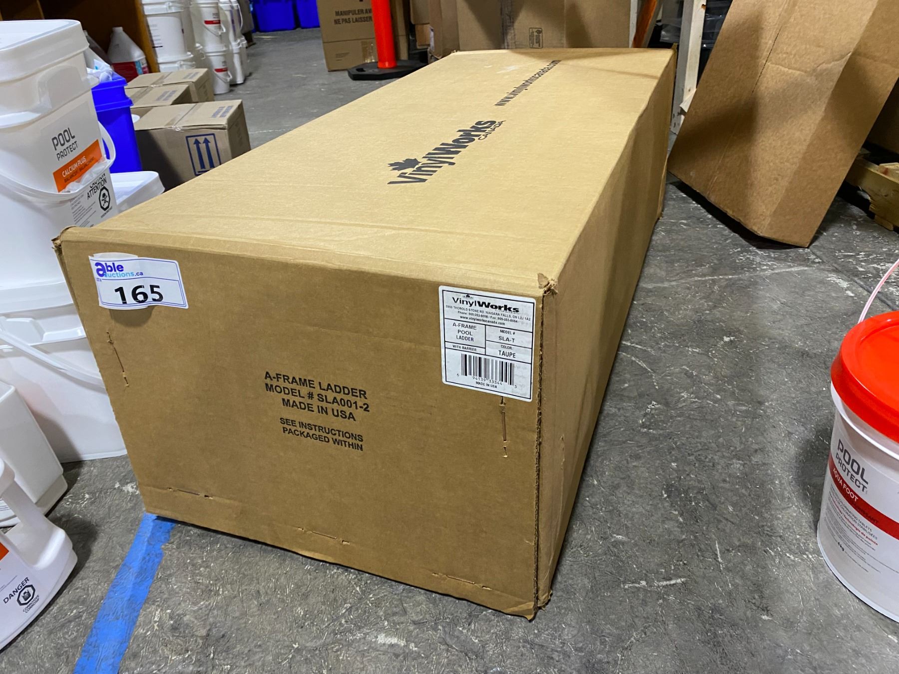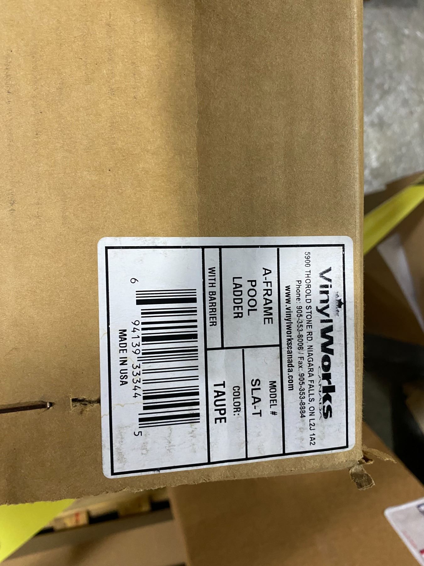 VINYLWORKS A-FRAME LADDER. TAUPE COLOR. MODEL SSA001-2 ADJUSTABLE FROM 48-66". THIS PREMIUM A-FRAME LADDER HAS A RIGID FRAME DESIGN TO ELIMINATE RACKING AND EXTRA TREAD FOR EASY CLIMBING. FEATURES A SLIDE-LOCK DESIGN. THE EXTERIOR SECTION CAN SLIDE UP AND CAN BE LOCKED TO FORM AN ADDITIONAL ENTRY BARRIER FOR GREATER SECURITY. ALSO INCLUDES AN ANTI-ENTRAPMENT BARRIER