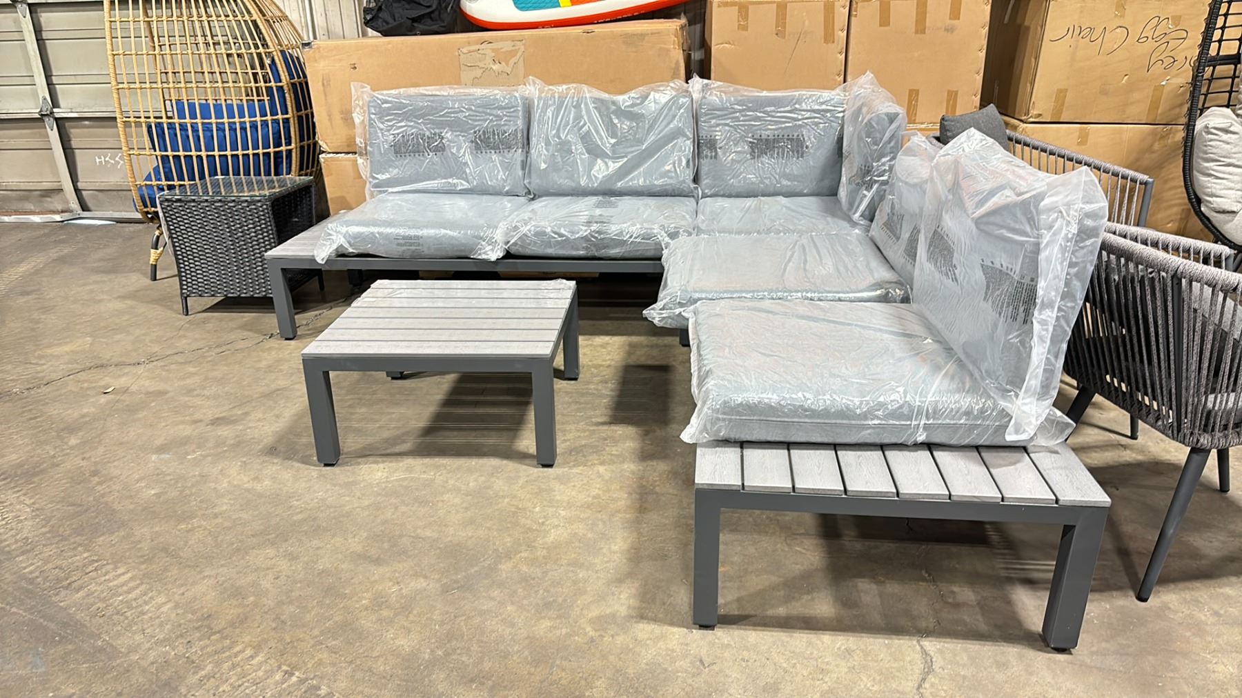 VOGUE COLLECTION EVA 3 PCS DARK GREY MODERN OUTDOOR PATIO SECTIONAL WITH GREY CUSHIONS *IN BOX*