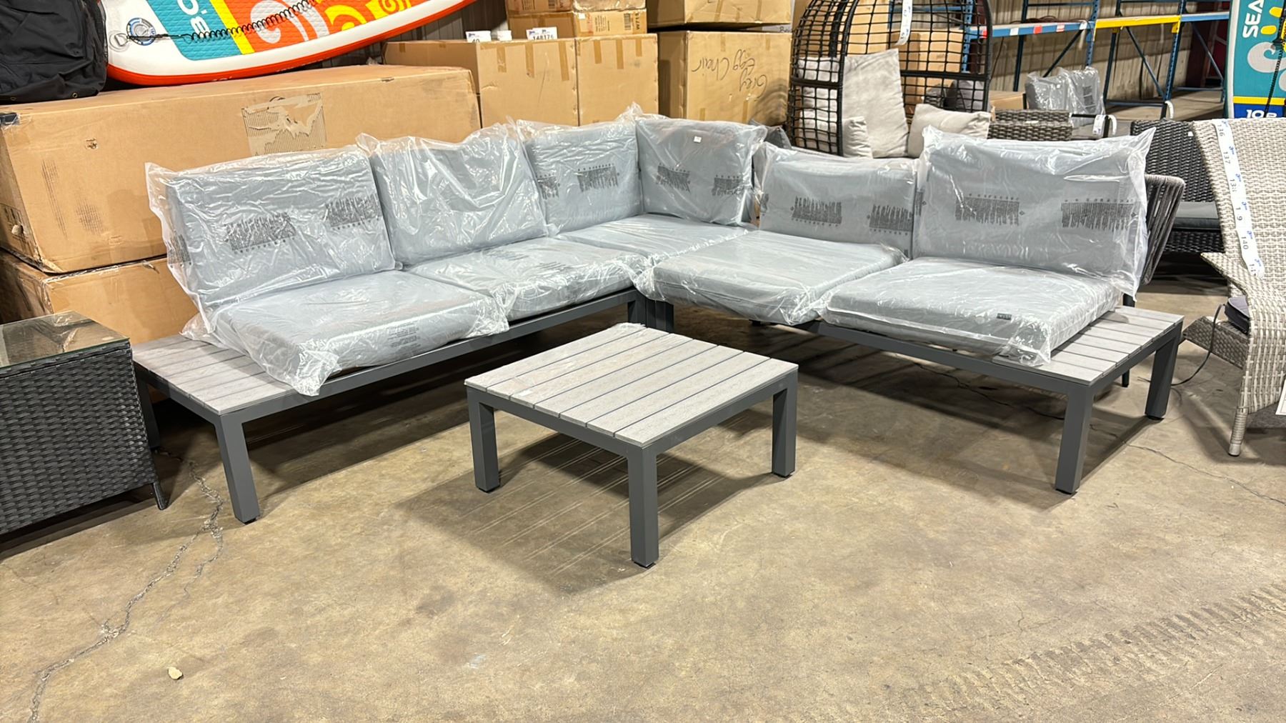 VOGUE COLLECTION EVA 3 PCS DARK GREY MODERN OUTDOOR PATIO SECTIONAL WITH GREY CUSHIONS *IN BOX*