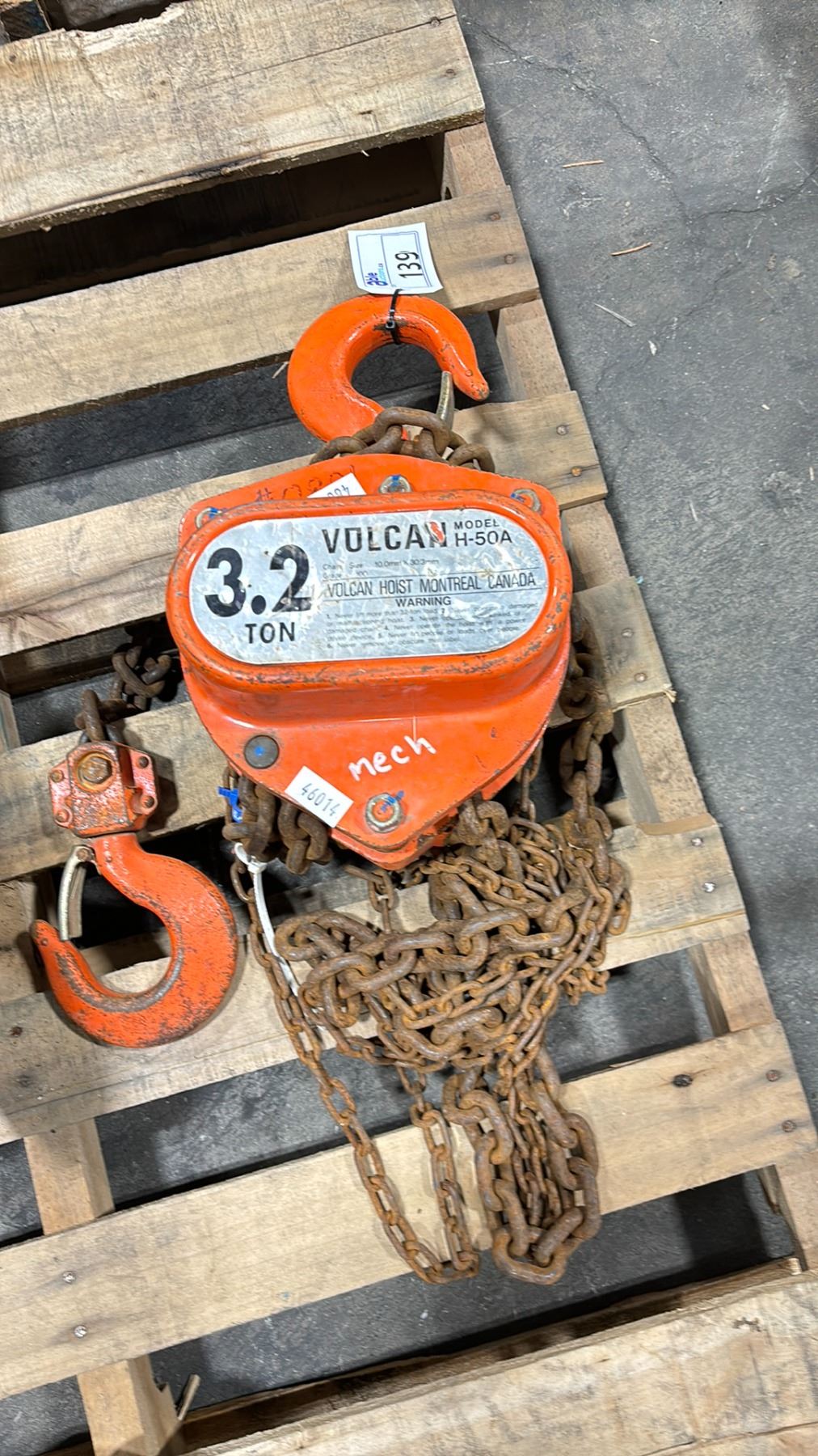 VOLCAN H-50A 3.2 TON OVERHEAD HOIST WITH CHAIN