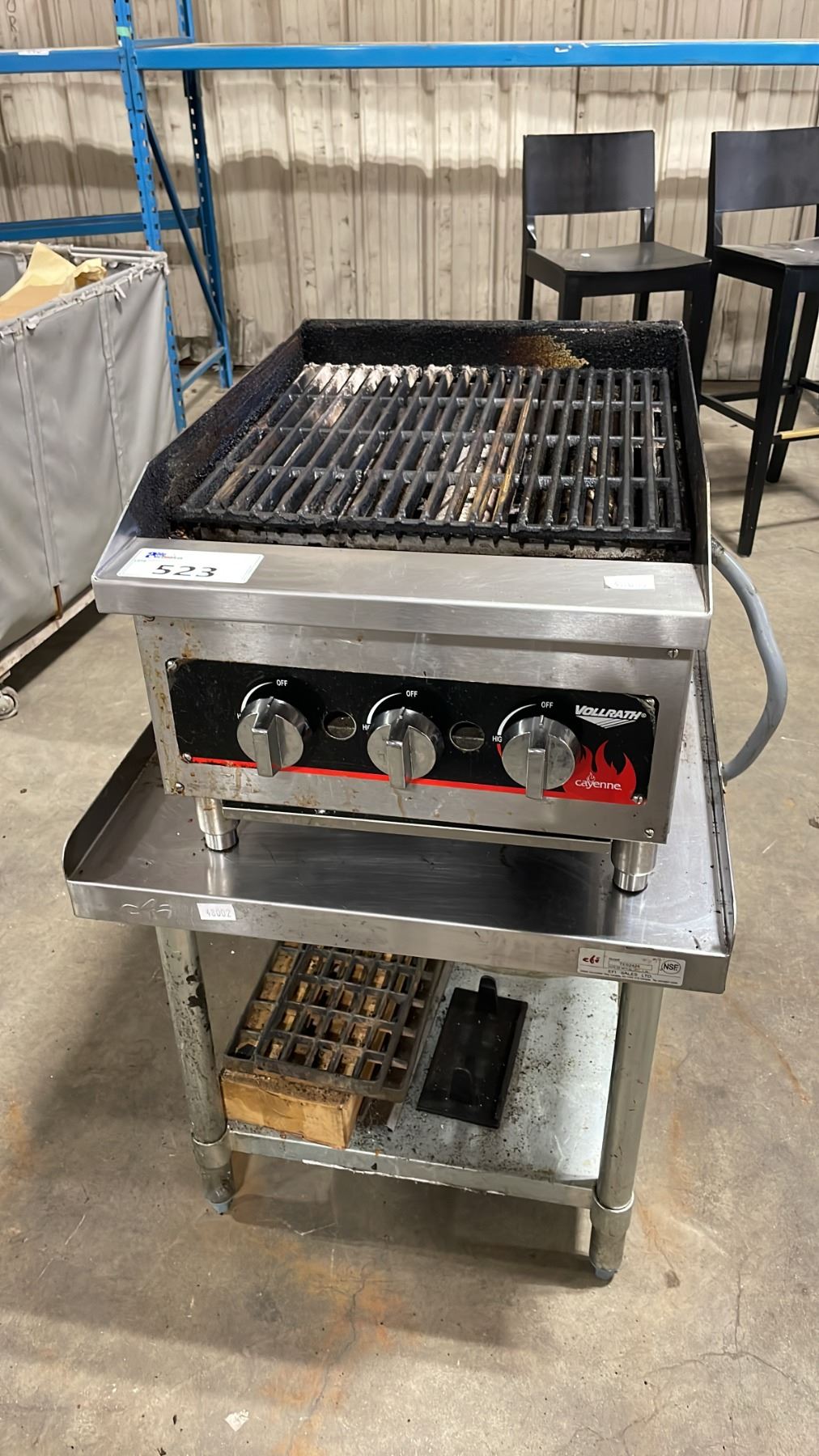 VOLLRATH CAYENNE STAINLESS STEEL COMMERCIAL COUNTERTOP 18" GAS CHARBROILER WITH EFI TES2424 STAINLESS STEEL 2 TIER EQUIPMENT STAND & CHARBROILER PARTS