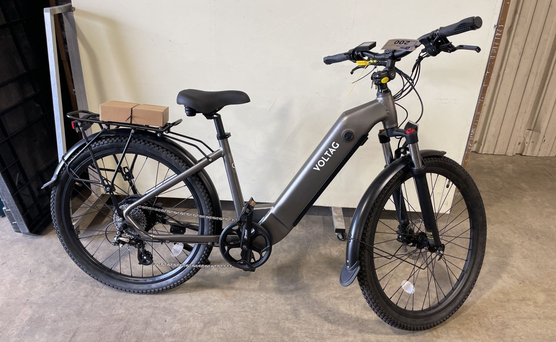 VOLTAG TITANIUM ELECTRIC BIKE WITH CHARGER ( NN-715026MDG ) - 100KM RANGE, HYDRAULIC DISC BRAKES, 9 LEVELS, LCD MULTI FUNCTION DISPLAY, HEADLIGHT + TAILLIGHT, ADJUSTABLE STEM + FRONT SUSPENSION FORK MOTOR: BAFANG G02 48V 500W NOMINAL, 750W PEAK OUTPUT, REAR GEARED HUB MOTOR BATTERY: SAMSUNG 48V 15AH ( 21700 CELLS ) TIRES: KENDA ALL TERRAIN 26" X 2.3" WEIGHT: 55LBS * IN BOX *