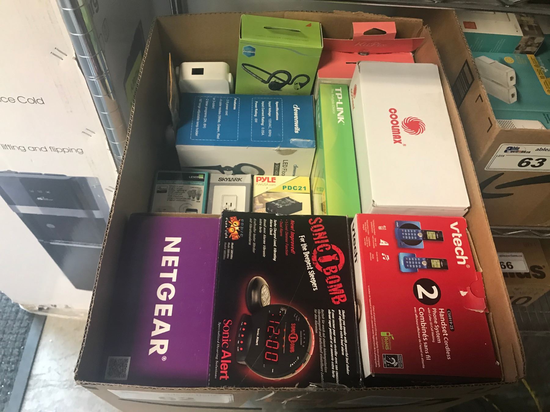 VTECH CORDLESS PHONES, SONIC BOMB ALARM CLOCK, NETGEAR WI-FI RANGE EXTENDER, SMART HOME ACCESSORIES, TP-LINK PCI EXPRESS WI-FI ADAPTER, SMART PHONE PICTURE PRINTER, BACKBEAT HEADPHONES, ETC