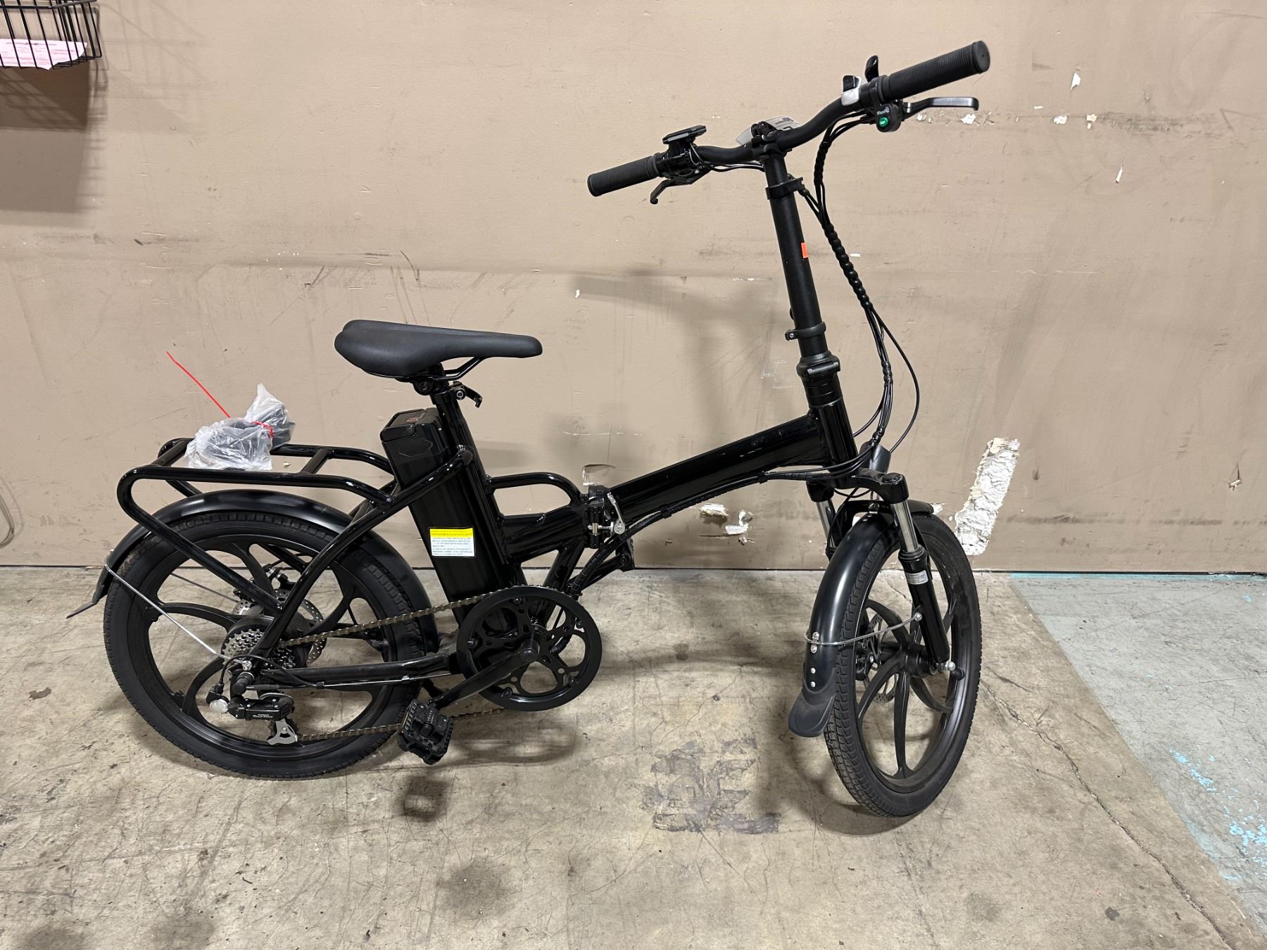 VTUVIA T20 BLACK 6 SPEED FRONT SUSPENSION 250 WATT ELECTRIC FOLDING BICYCLE WITH FULL DISC BRAKES, CHARGER & KEYS (WORKING CONDITION UNKNOWN)