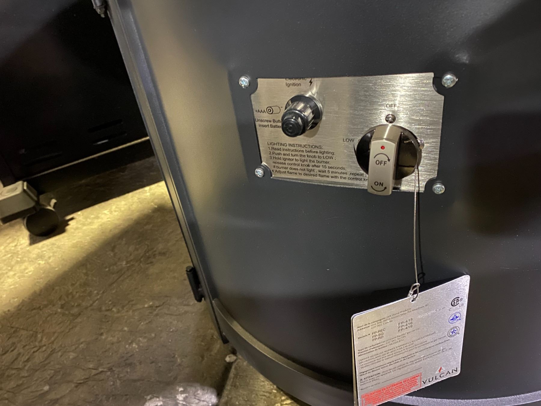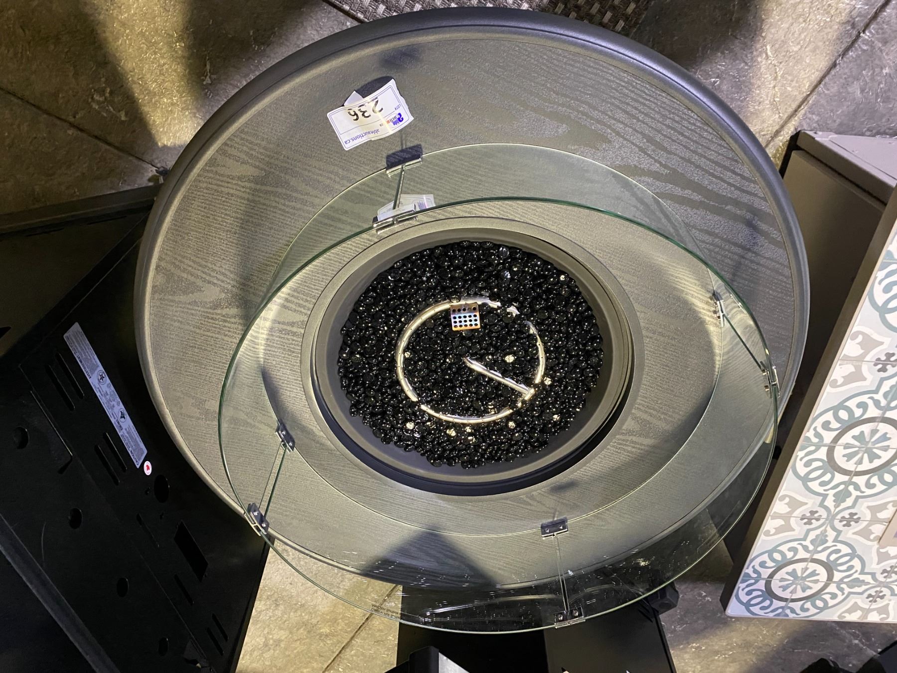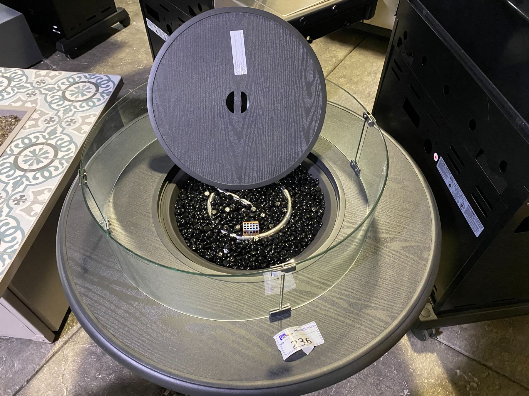 VULCAN 42" ROUND PROPANE FIRE TABLE. COMES WITH COVER, WIND GUARD AND LID. RETAILS $1350 CONVERTIBLE TO NAT GAS IF DESIRED