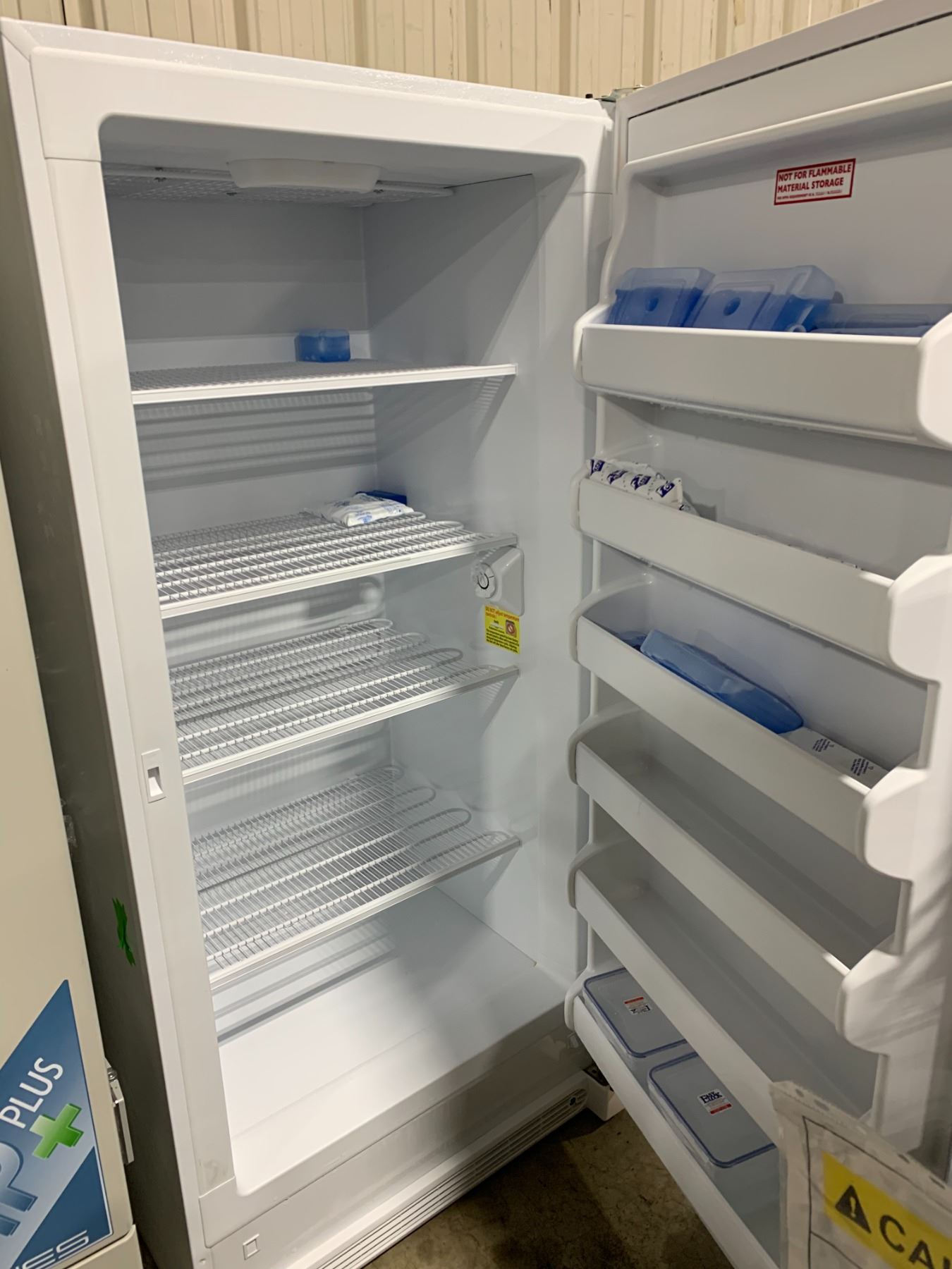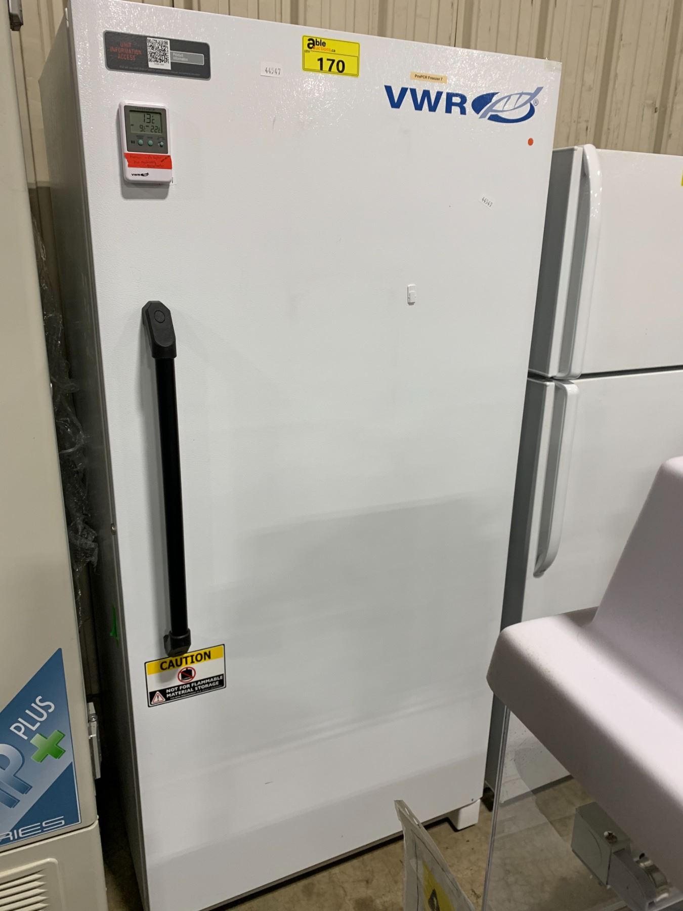 VWR SCBMF-2020 SINGLE DOOR COMMERCIAL LABORATORY VERTICAL FREEZER WITH VWR TIMER & ASSORTED COLD PACK CONTENTS