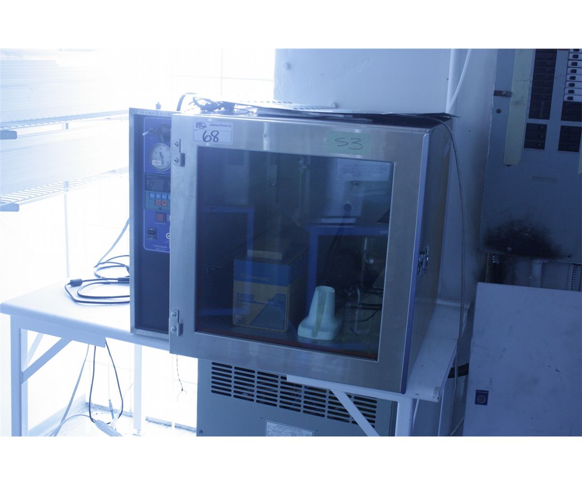VWR SCIENTIFIC STAINLESS STEEL GLASS FRONT VACUUM OVEN AND STAND