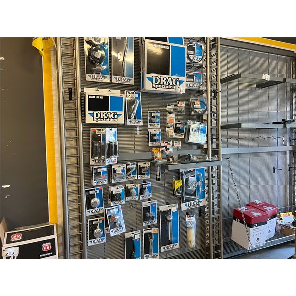 LARGE ASSORTMENT OF DRAG SPECIALTIES HARLEY-DAVIDSON ACCESSORIES (OVER 60 PIECES) RACK NOT INCLUDED218 - LARGE ASSORTMENT OF DRAG SPECIALTIES HARLEY-DAVIDSON ACCESSORIES (OVER 60 PIECES) RACK NOT INCLUDED