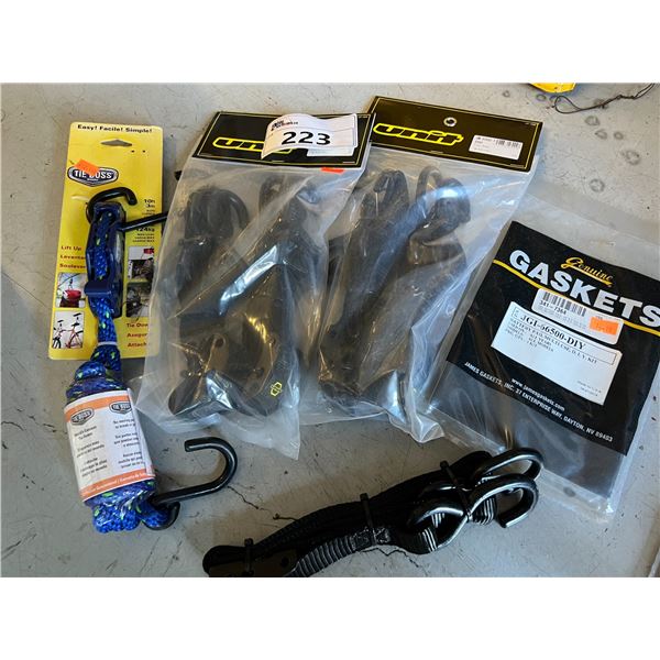 2 PAIRS MOTORCYCLE TIE DOWNS PLUS BATTERY PAD
