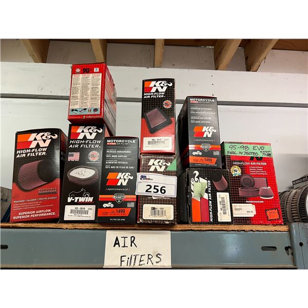 SHELF LOT OF K&N AIR FILTERS (APPROX 10 PIECES)256 - SHELF LOT OF K&N AIR FILTERS (APPROX 10 PIECES)