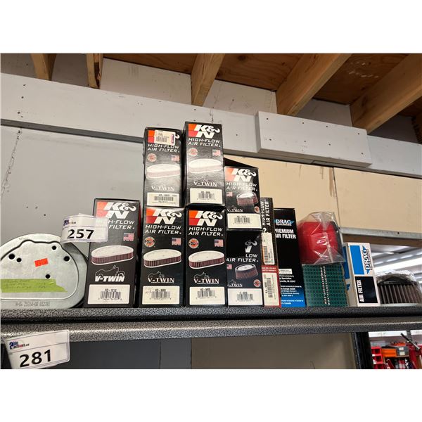 SHELF LOT OF K&N & OTHER AIR FILTERS (APPROX 20 PIECES)257 - SHELF LOT OF K&N & OTHER AIR FILTERS (APPROX 20 PIECES)