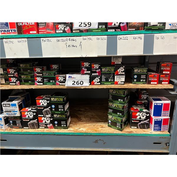 2 SHELVES OF OIL FILTERS (APPROX 45 PIECES)260 - 2 SHELVES OF OIL FILTERS (APPROX 45 PIECES)