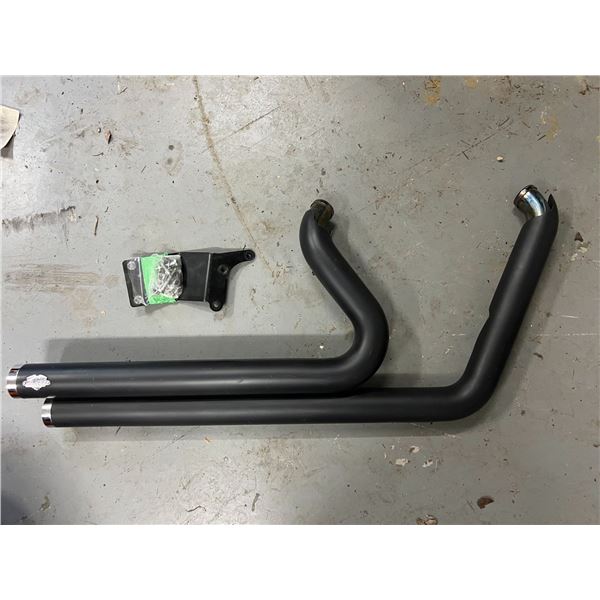VANCE & HINES CUSTOM EXHAUST PIPES - FITS HARLEY DYNA STREET BOB & OTHERS - AS NEW WITH MOUNTING HARDWARE