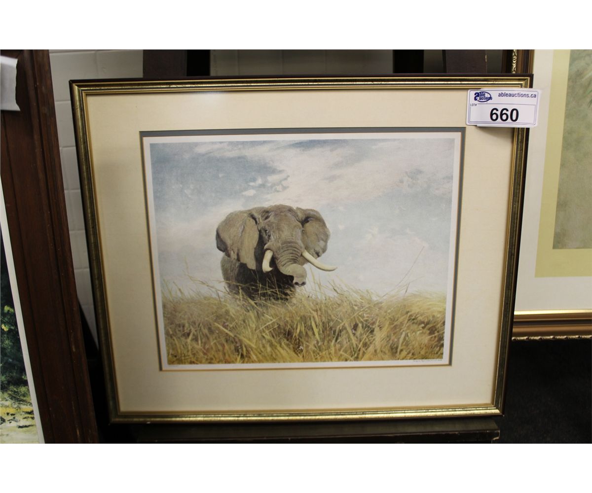 W. KUHNERT, "ELEPHANT" FRAMED PRINT 17" X 14" C.1950