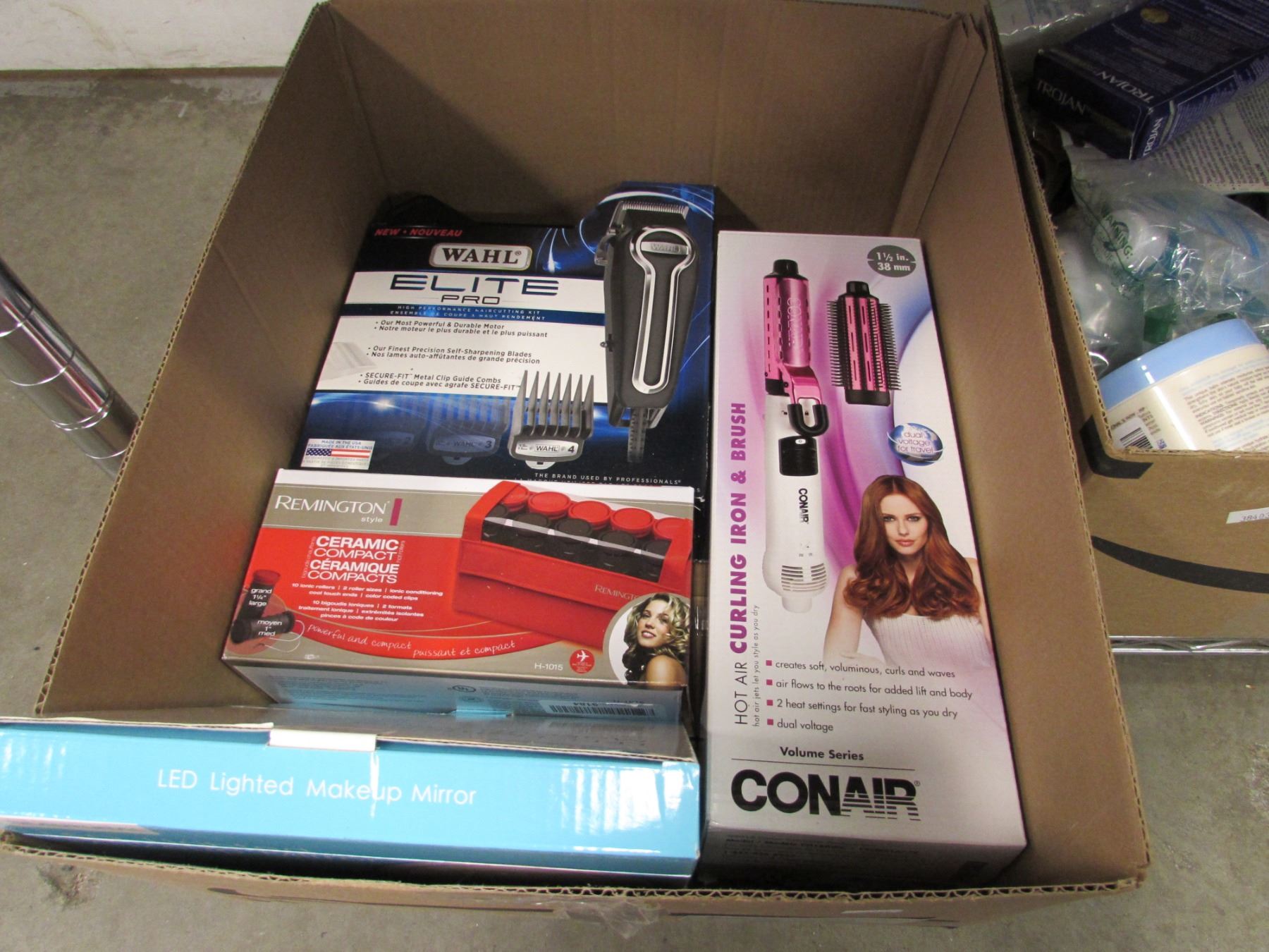 WAHL ELITE PRO HAIR CUTTING KIT, LED LIGHTED MAKEUP MIRROR, REMINGTON CERAMIC HAIR ROLLERS, CONAIR CURLING IRON & BRUSH