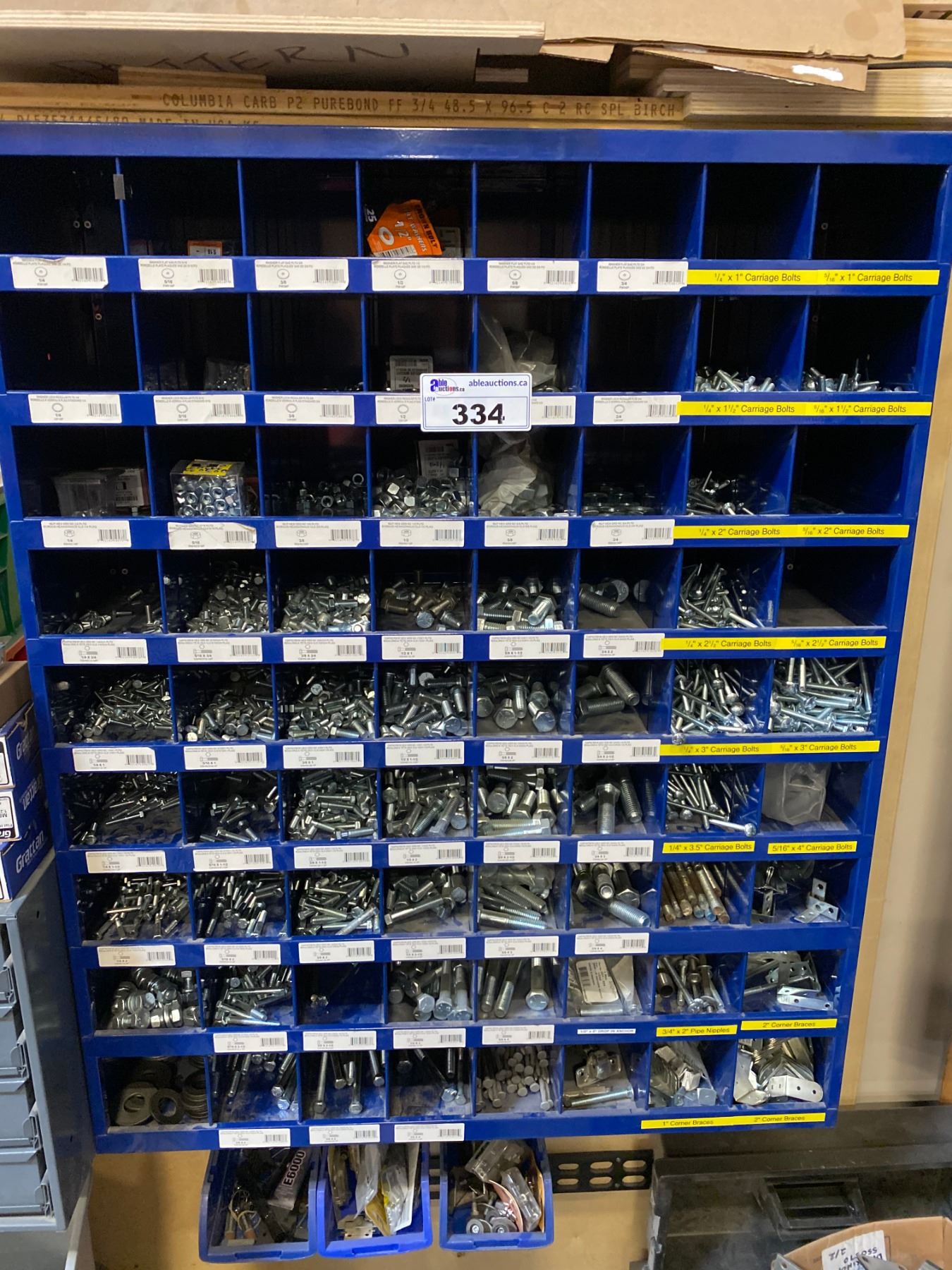 WALL MOUNT PARTS RACK WITH CONTENTS