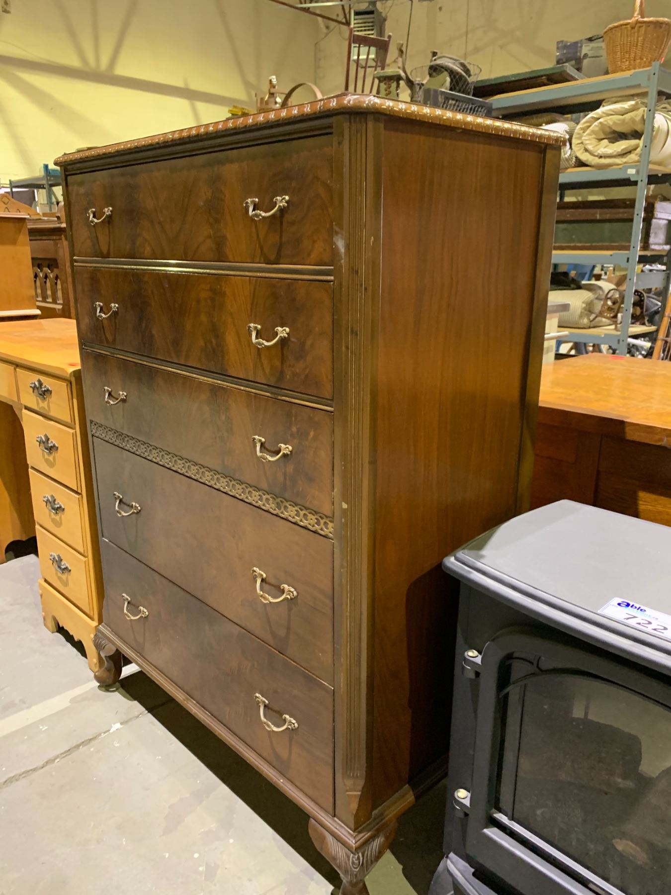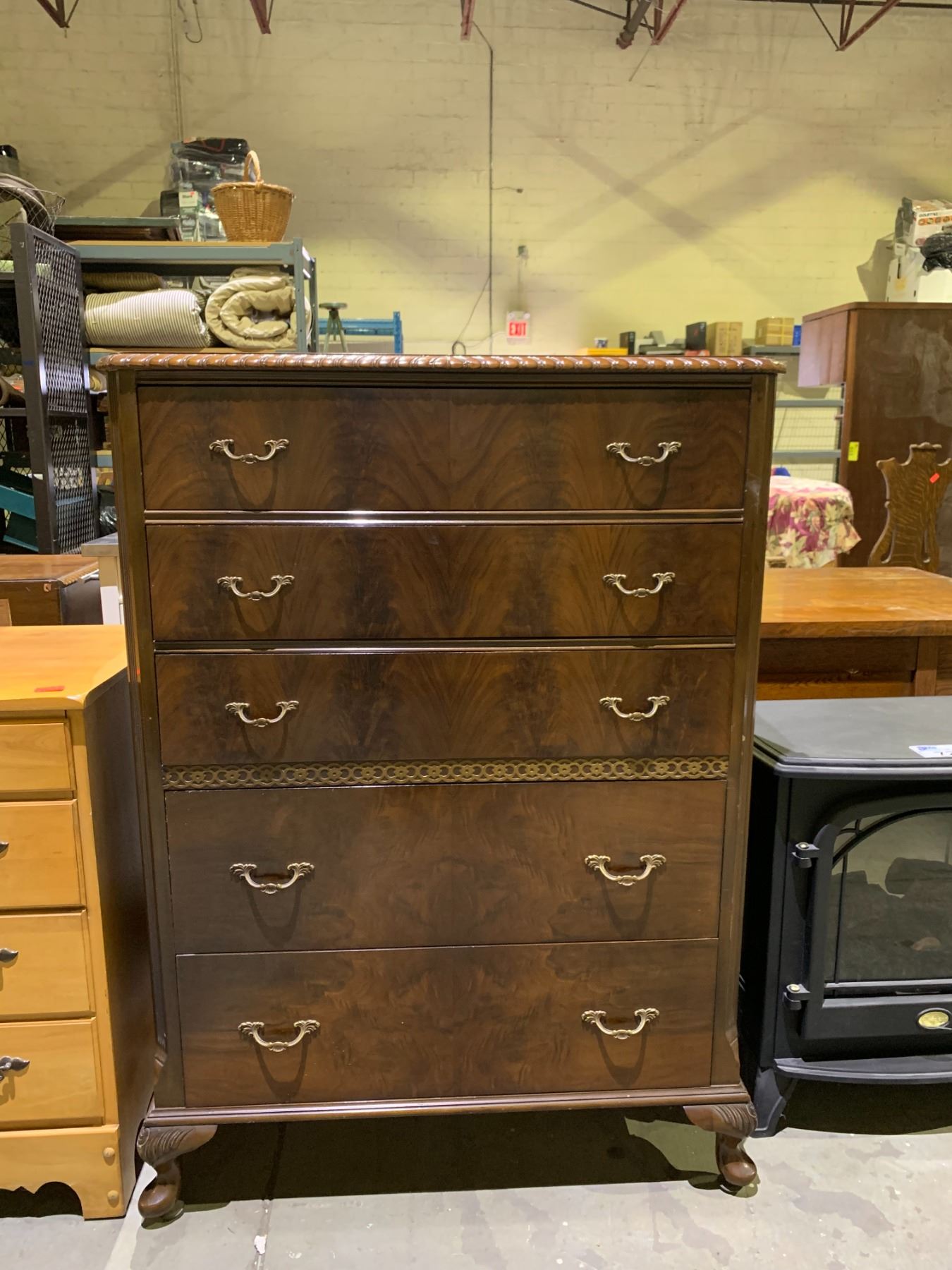 WALNUT 5 DRAWER HIGHBOY DRESSER 48"X34"X18"