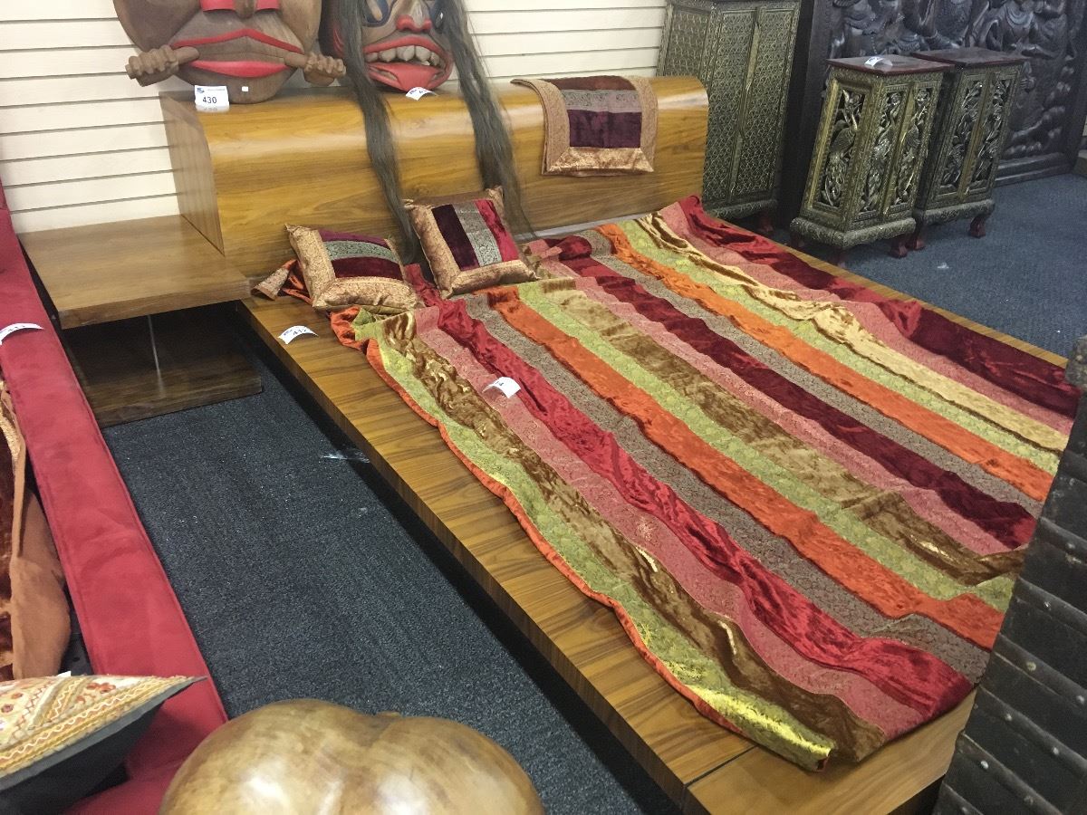 WALNUT VENEER ART DECO STYLE BED FRAME, 9' L X 6' 3'' WIDE, AND MATCHING NIGHT TABLE