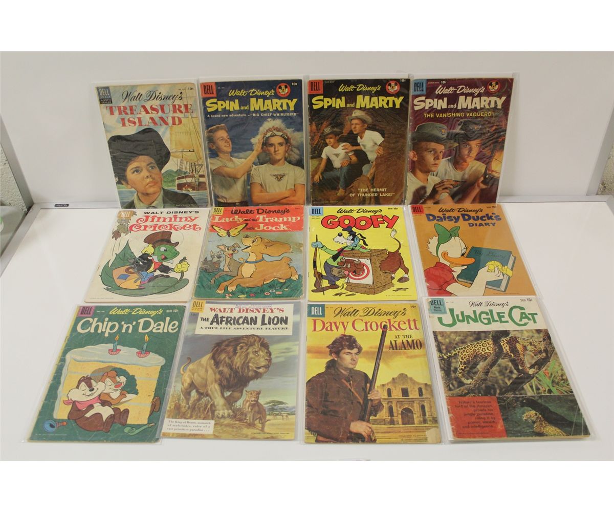 WALT DISNEY'S ASSORTED TITLES (1950'S-60'S) 1O CENT DELL COMICS. 15 BOOKS TOTAL, LOW GRADE AVERAGE.