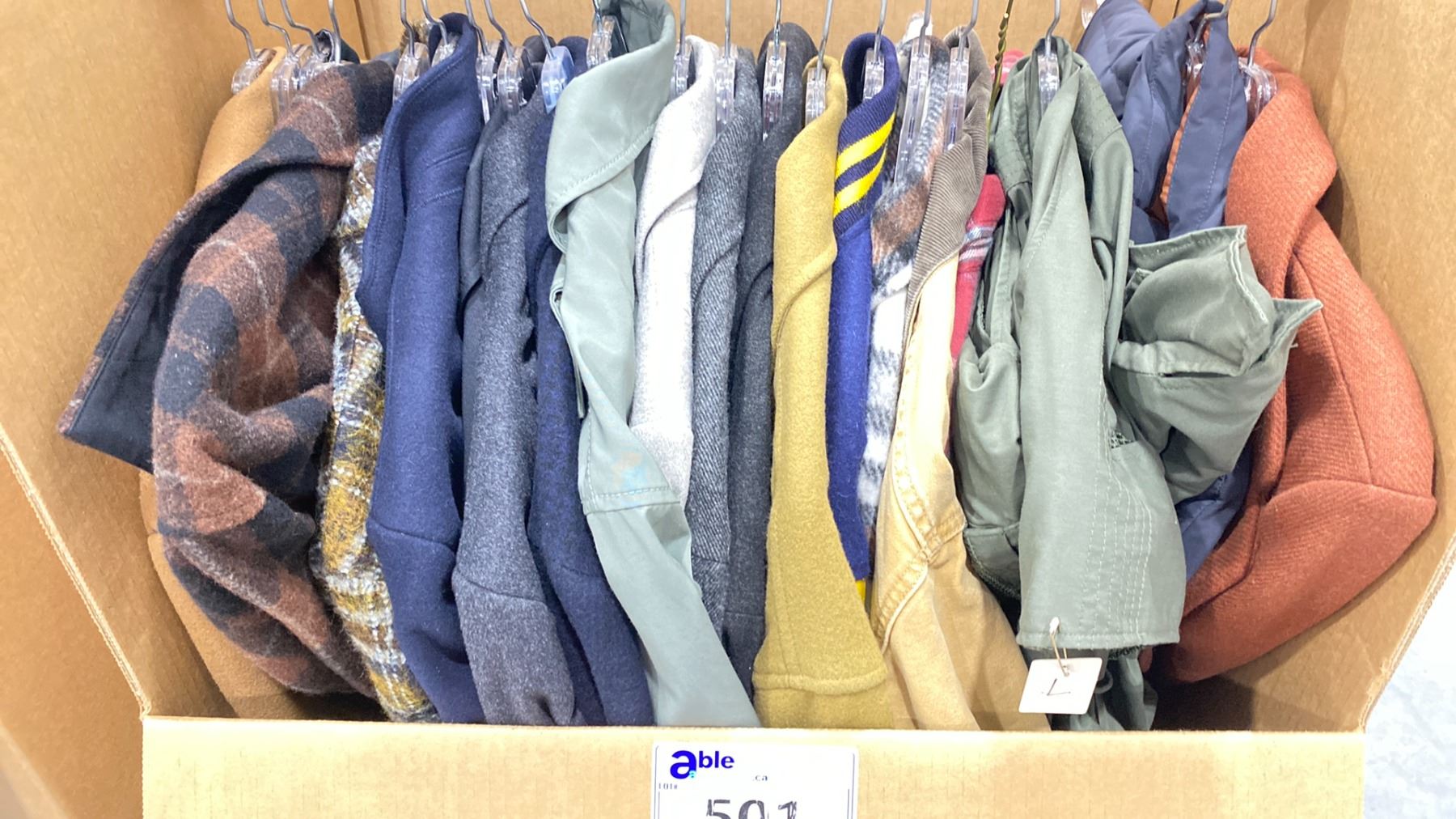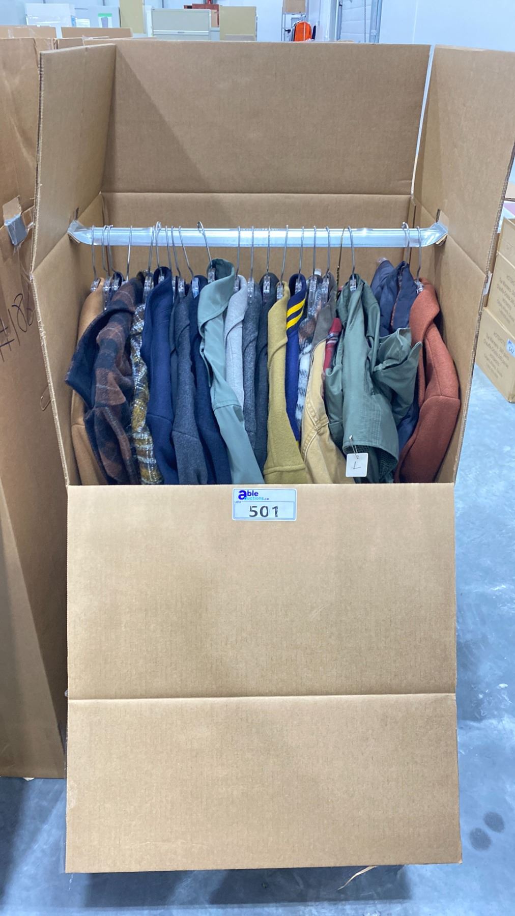 WARDROBE BOX OF ASSORTED CLOTHING (BOX AND ALL CONTENTS MUST BE TAKEN)