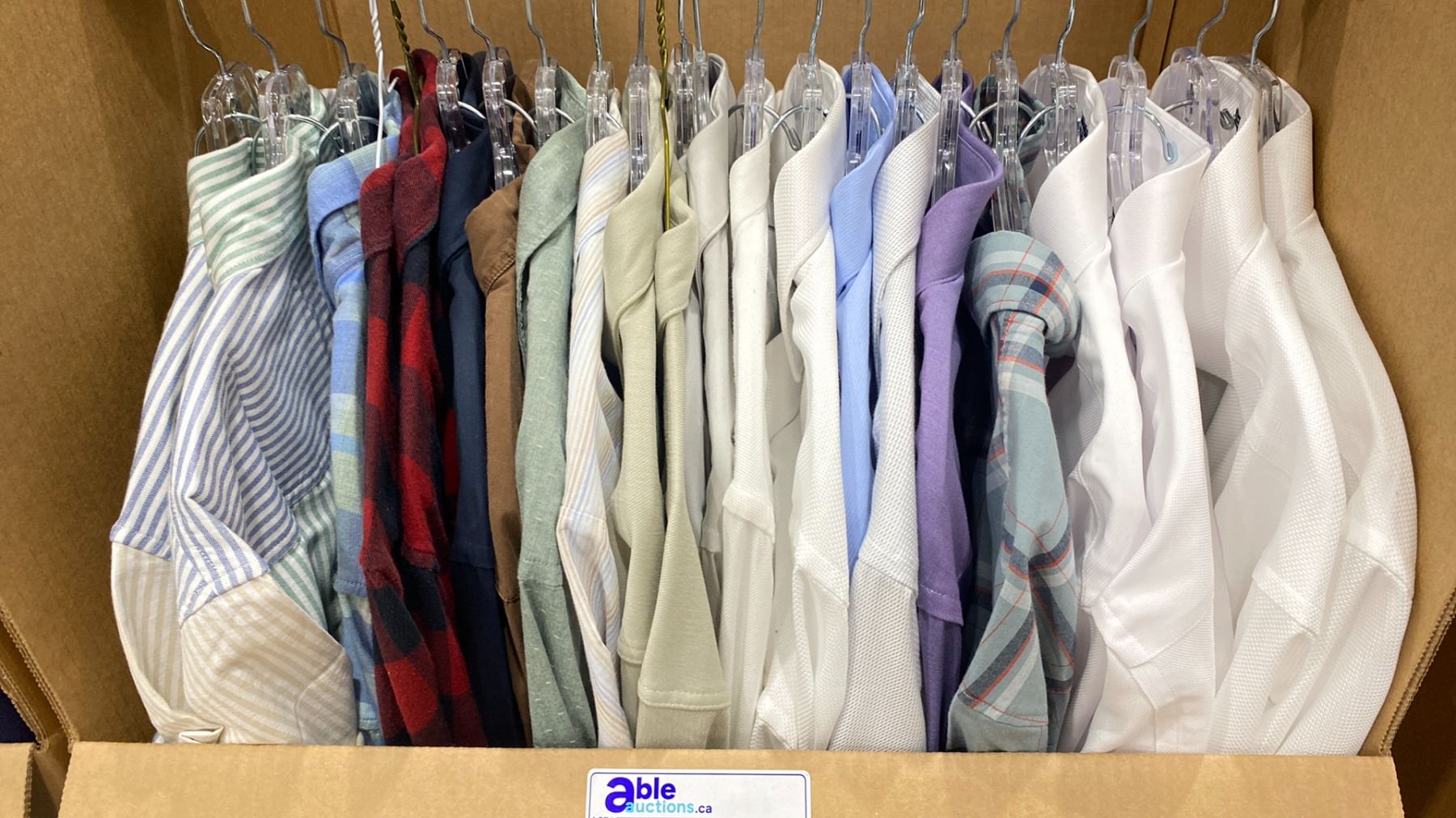 WARDROBE BOX OF ASSORTED CLOTHING (BOX AND ALL CONTENTS MUST BE TAKEN)