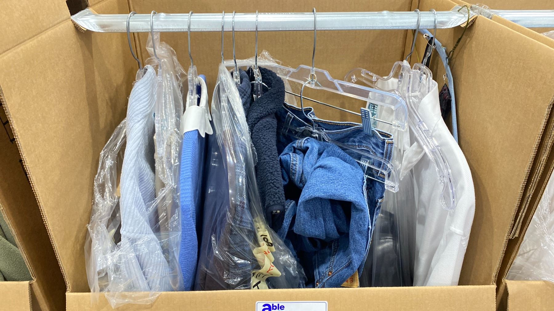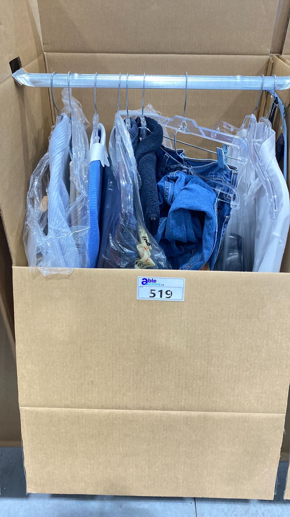 WARDROBE BOX OF ASSORTED CLOTHING (BOX AND ALL CONTENTS MUST BE TAKEN)