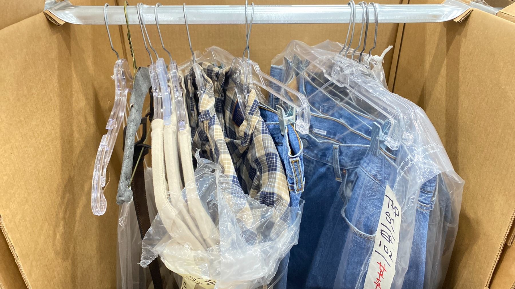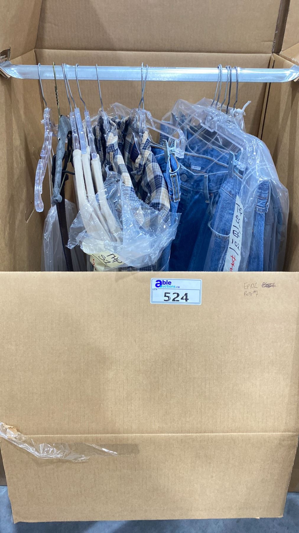 WARDROBE BOX OF ASSORTED CLOTHING (BOX AND ALL CONTENTS MUST BE TAKEN)
