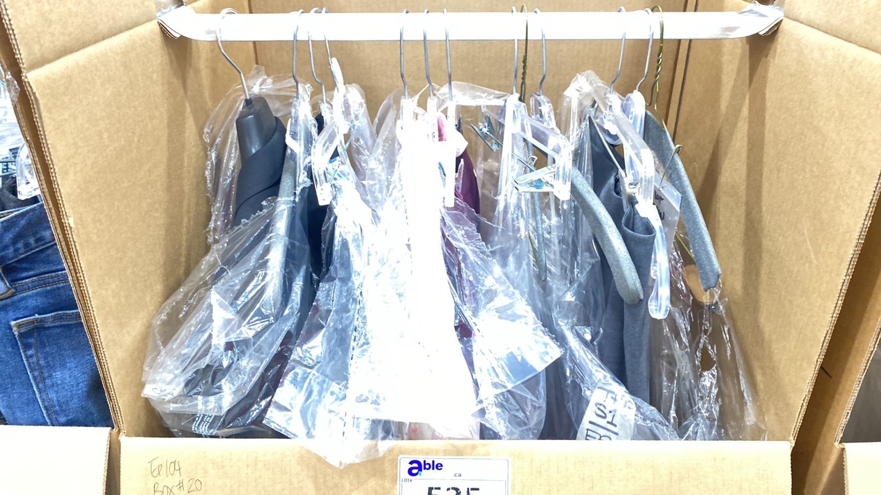 WARDROBE BOX OF ASSORTED CLOTHING (BOX AND ALL CONTENTS MUST BE TAKEN)