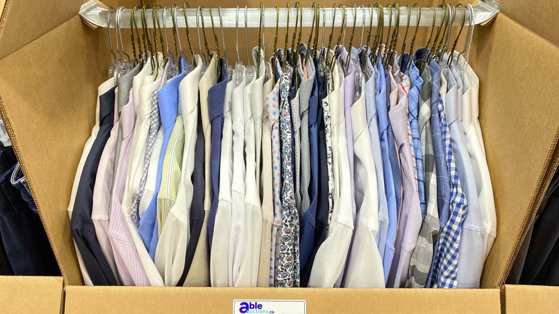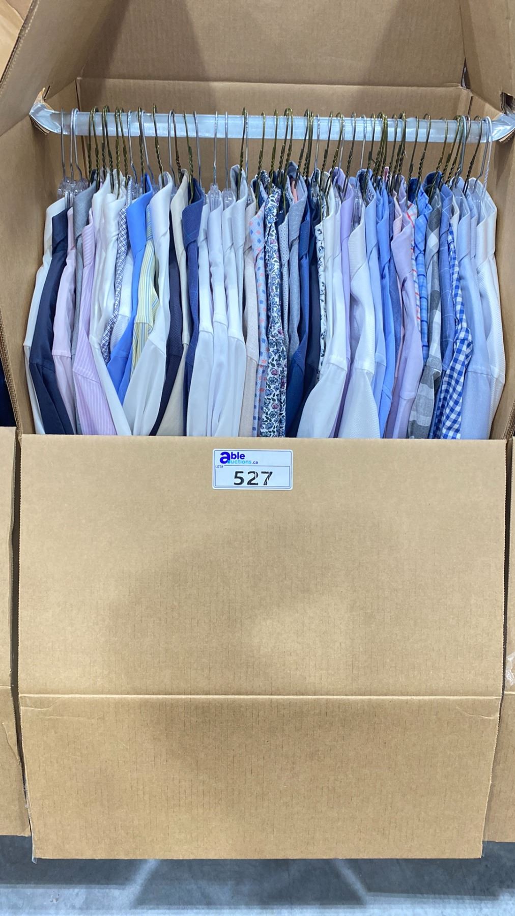 WARDROBE BOX OF ASSORTED CLOTHING (BOX AND ALL CONTENTS MUST BE TAKEN)