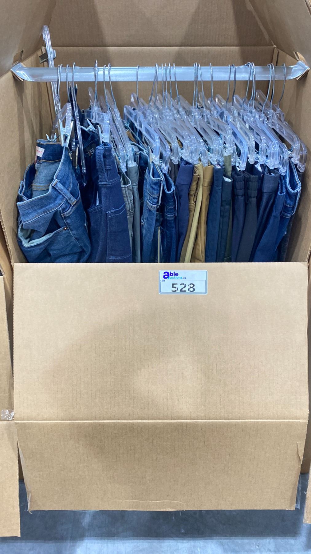 WARDROBE BOX OF ASSORTED CLOTHING (BOX AND ALL CONTENTS MUST BE TAKEN)