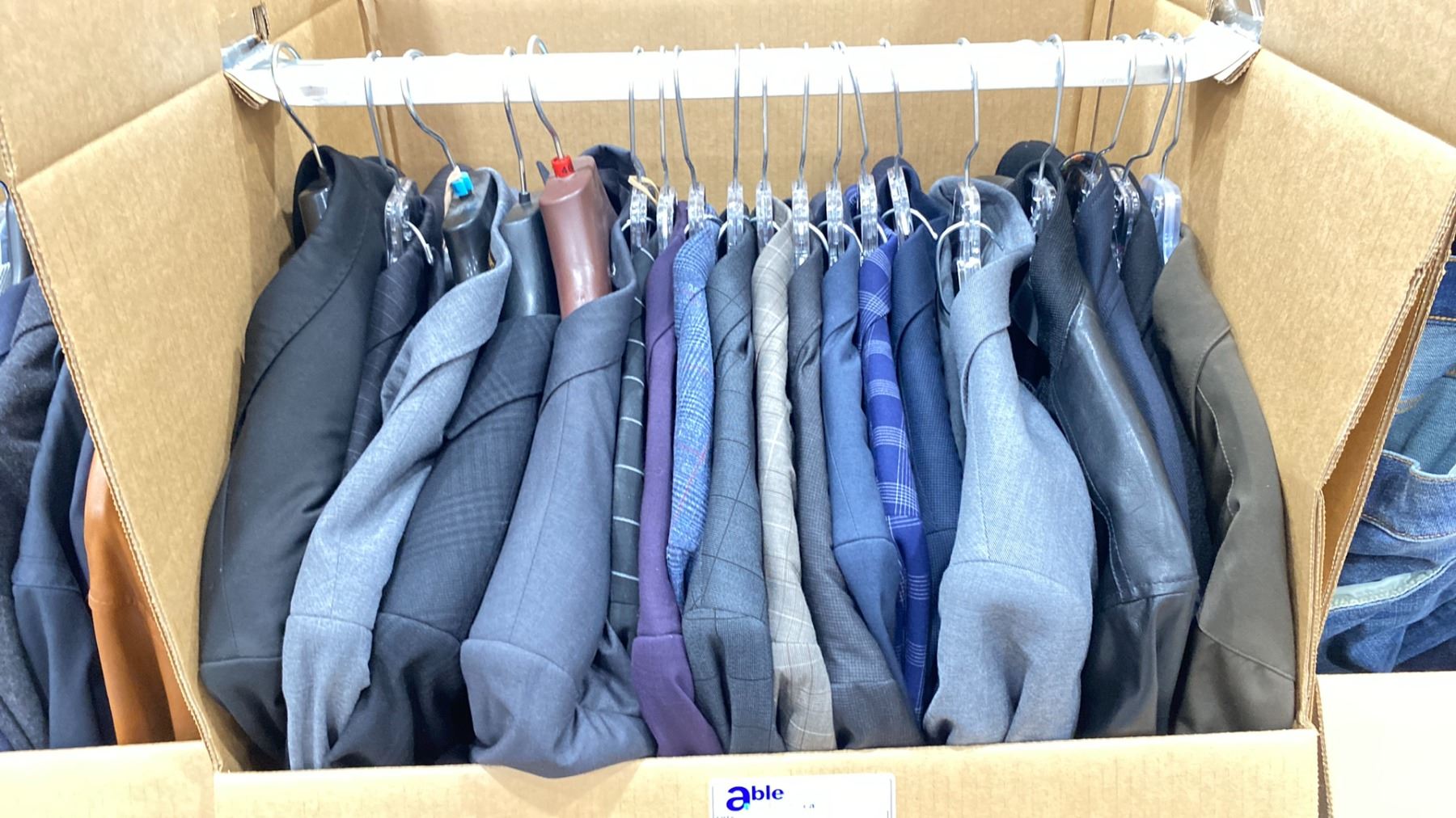 WARDROBE BOX OF ASSORTED CLOTHING (BOX AND ALL CONTENTS MUST BE TAKEN)