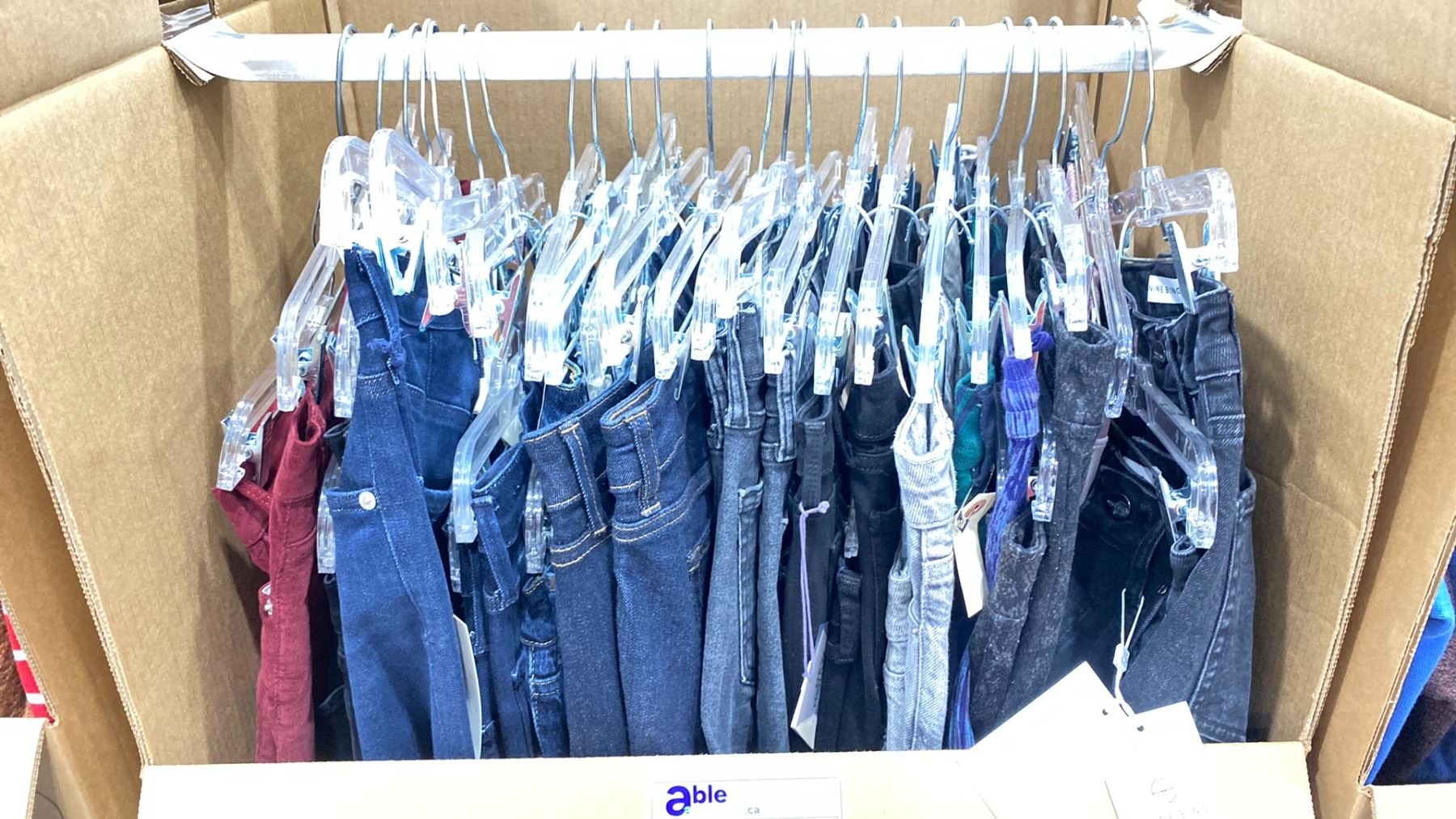 WARDROBE BOX OF ASSORTED CLOTHING (BOX AND ALL CONTENTS MUST BE TAKEN)
