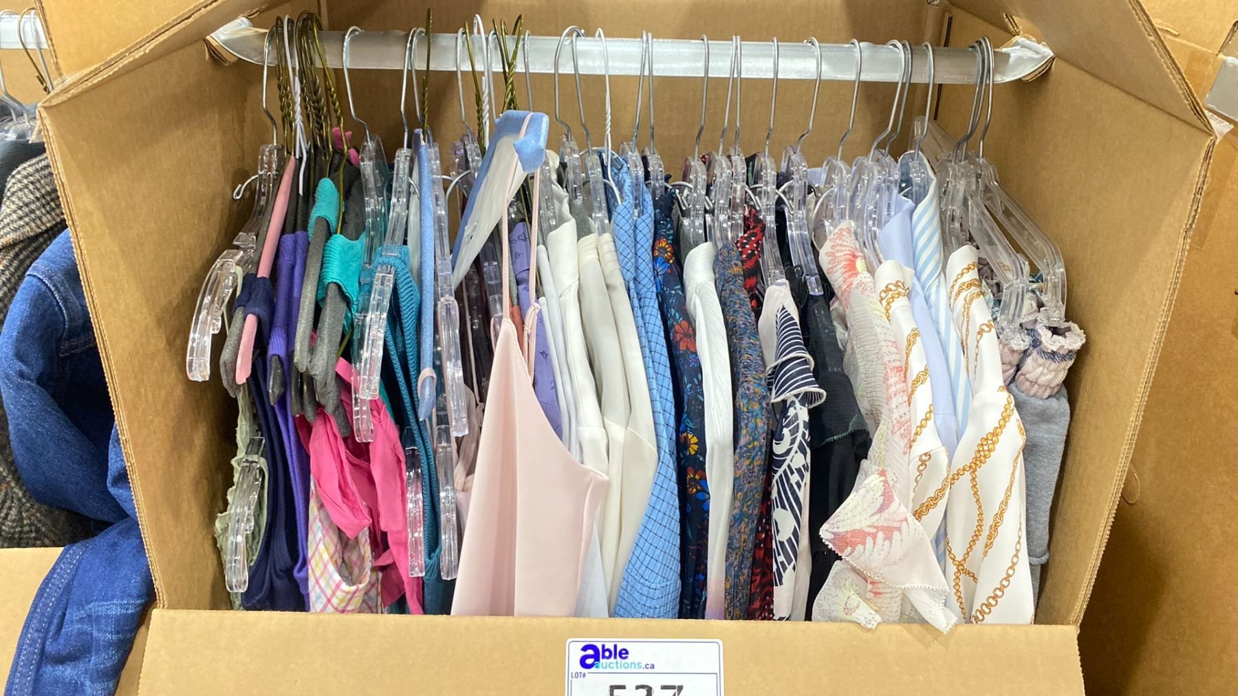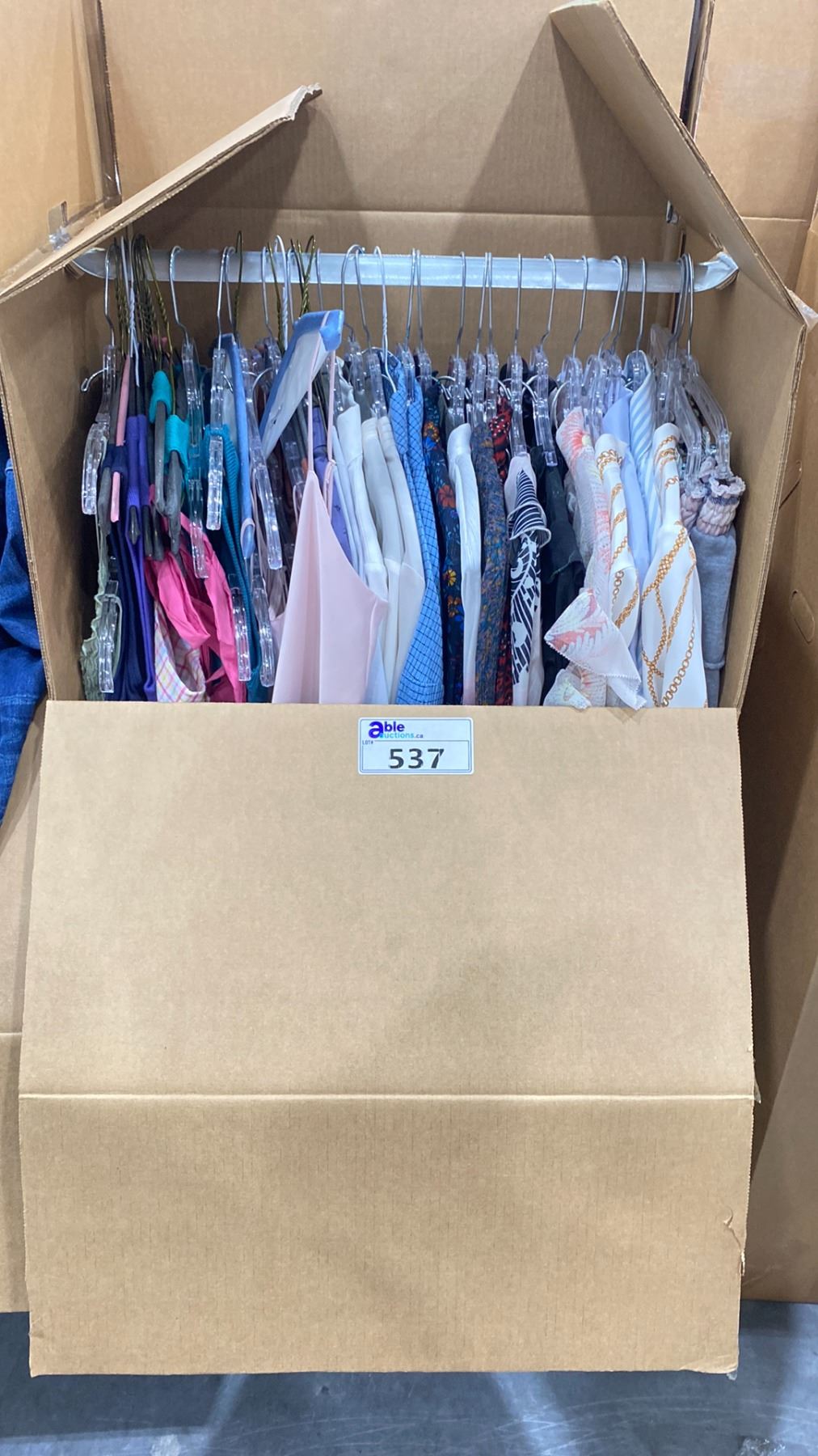 WARDROBE BOX OF ASSORTED CLOTHING (BOX AND ALL CONTENTS MUST BE TAKEN)