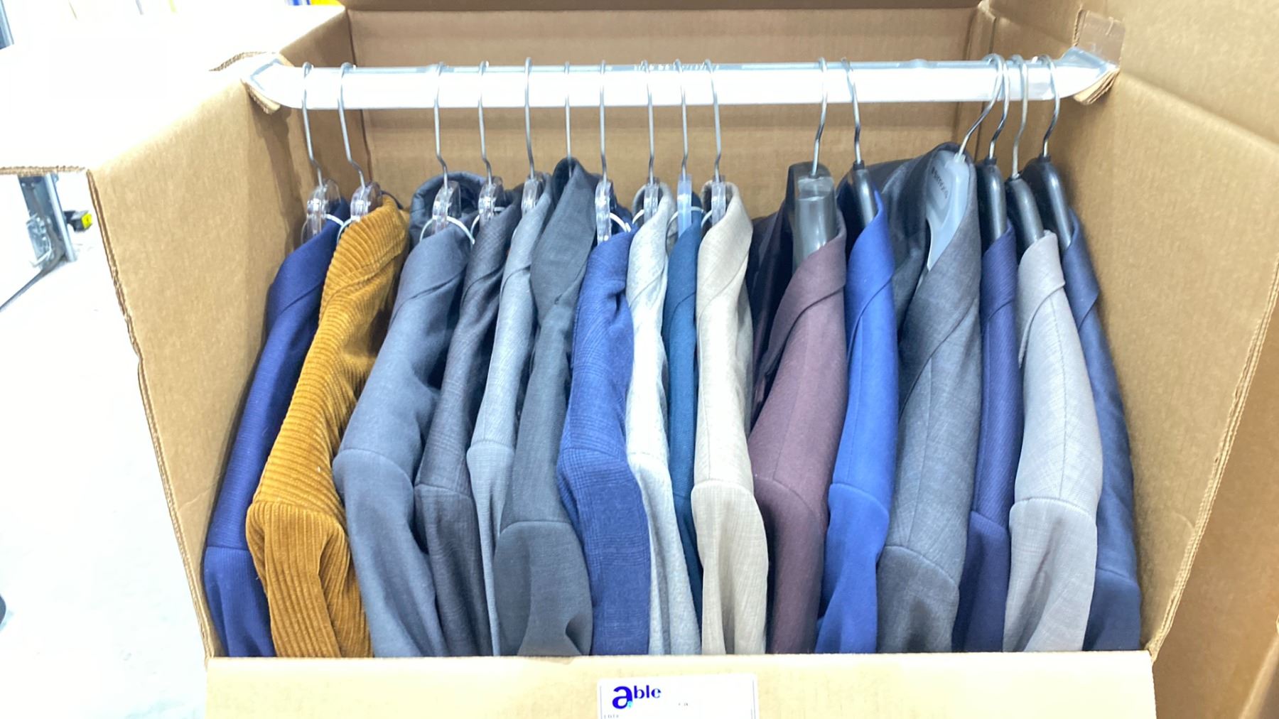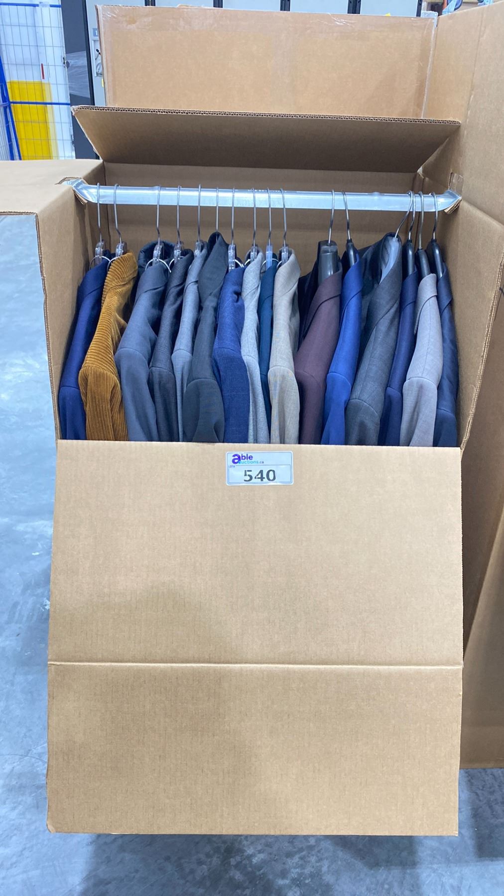 WARDROBE BOX OF ASSORTED CLOTHING (BOX AND ALL CONTENTS MUST BE TAKEN)