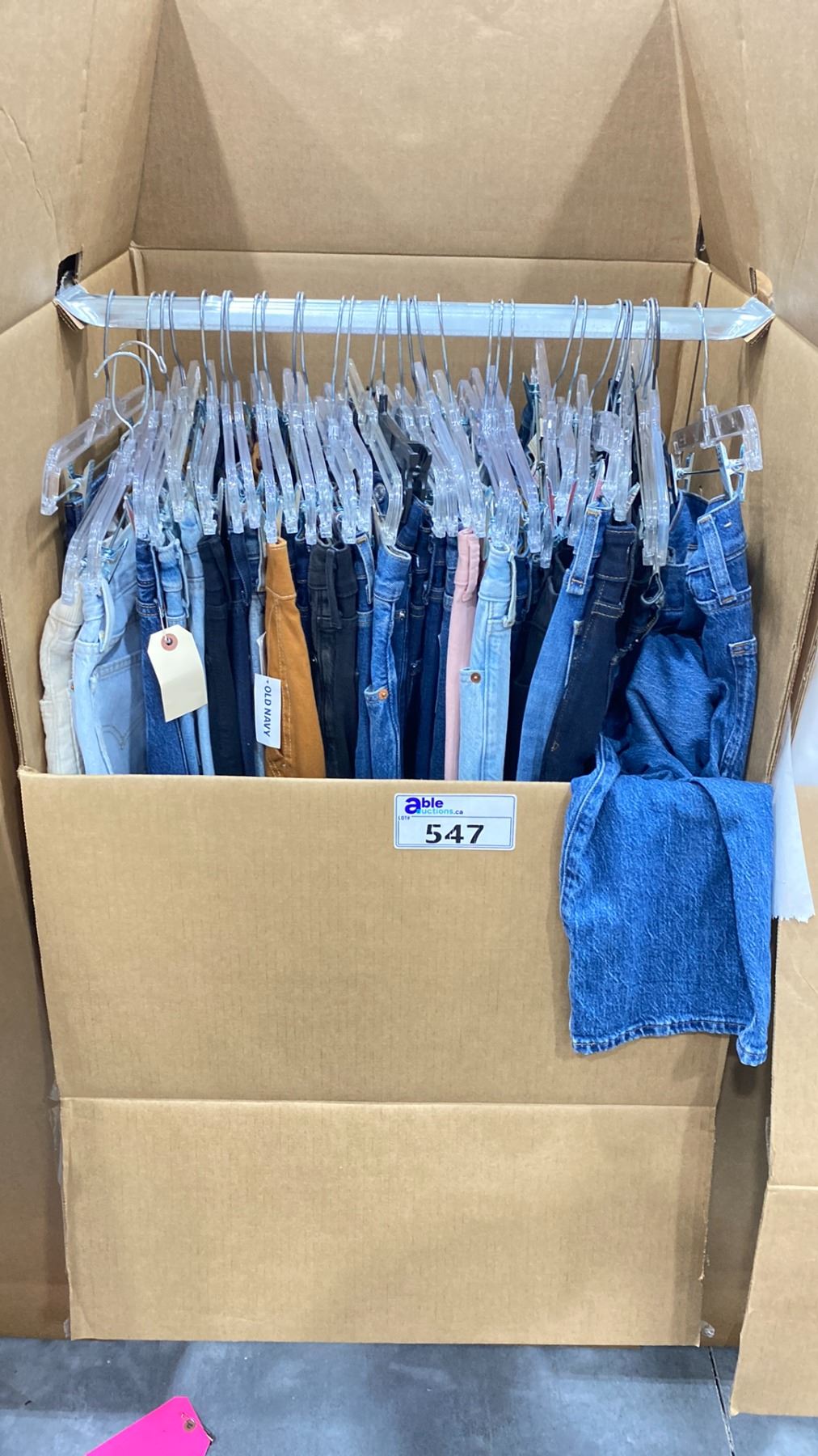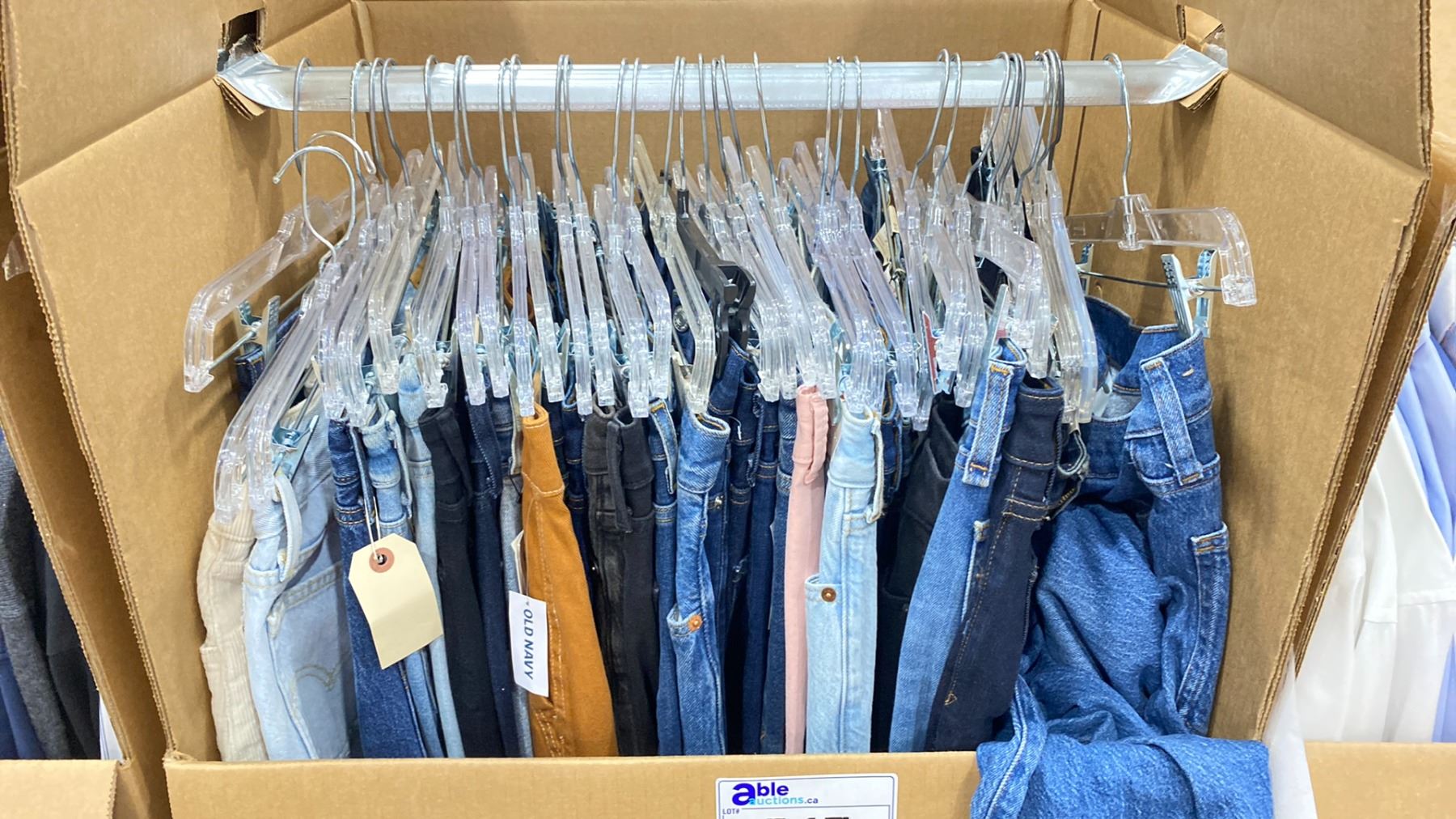 WARDROBE BOX OF ASSORTED CLOTHING (BOX AND ALL CONTENTS MUST BE TAKEN)