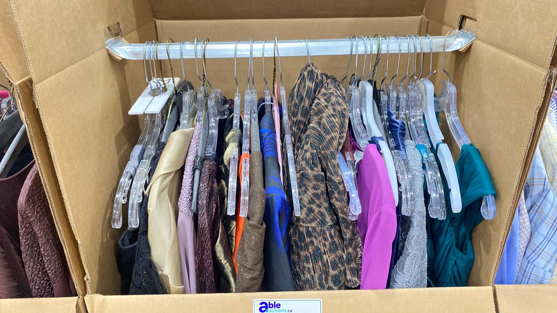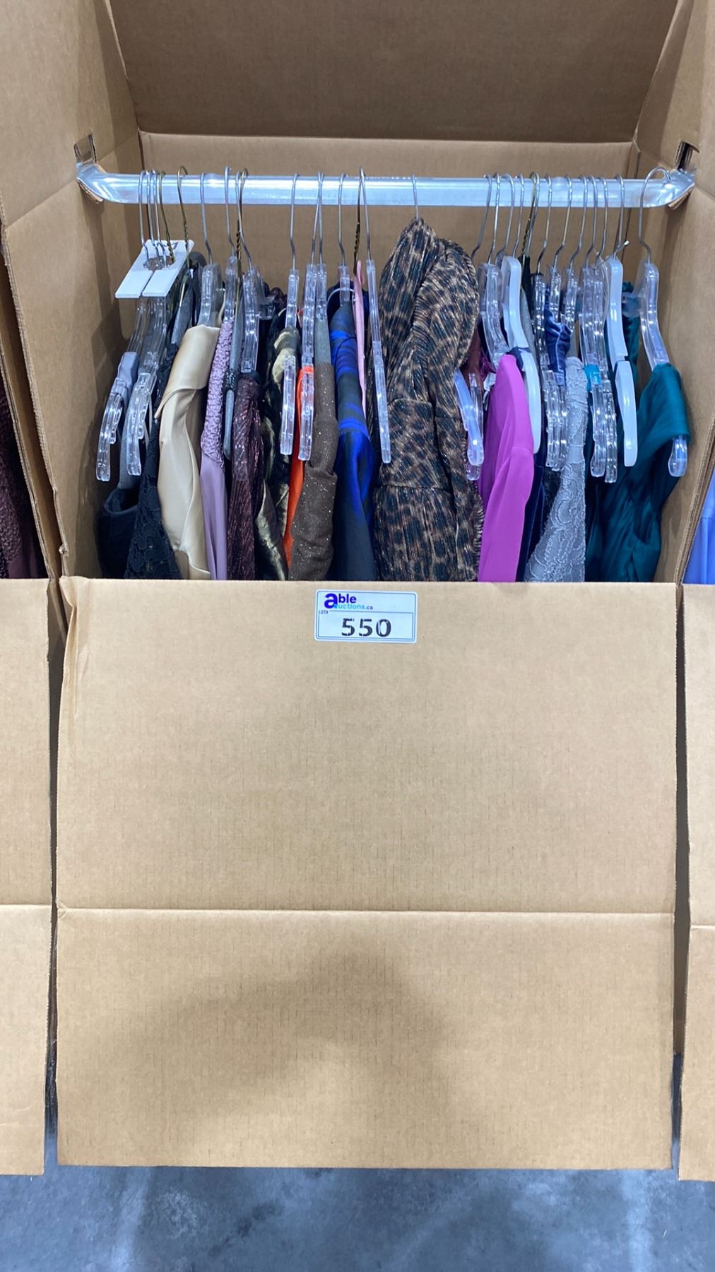 WARDROBE BOX OF ASSORTED CLOTHING (BOX AND ALL CONTENTS MUST BE TAKEN)