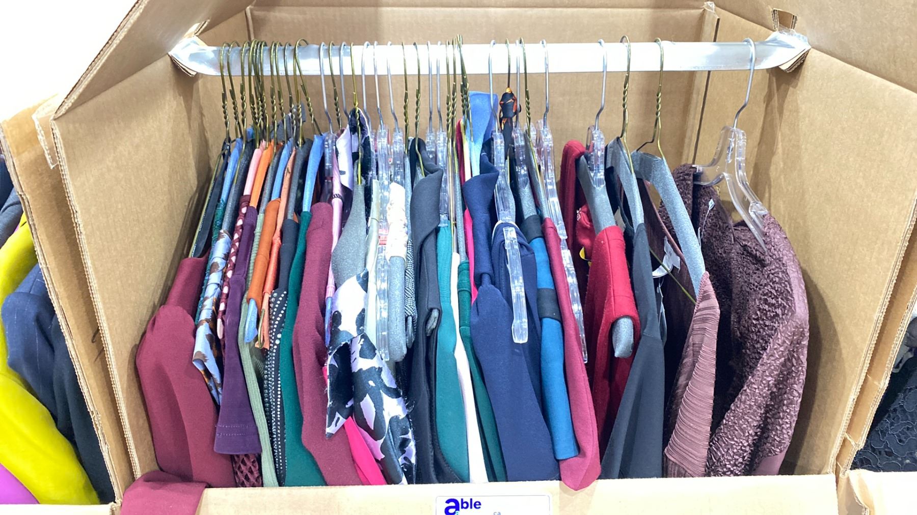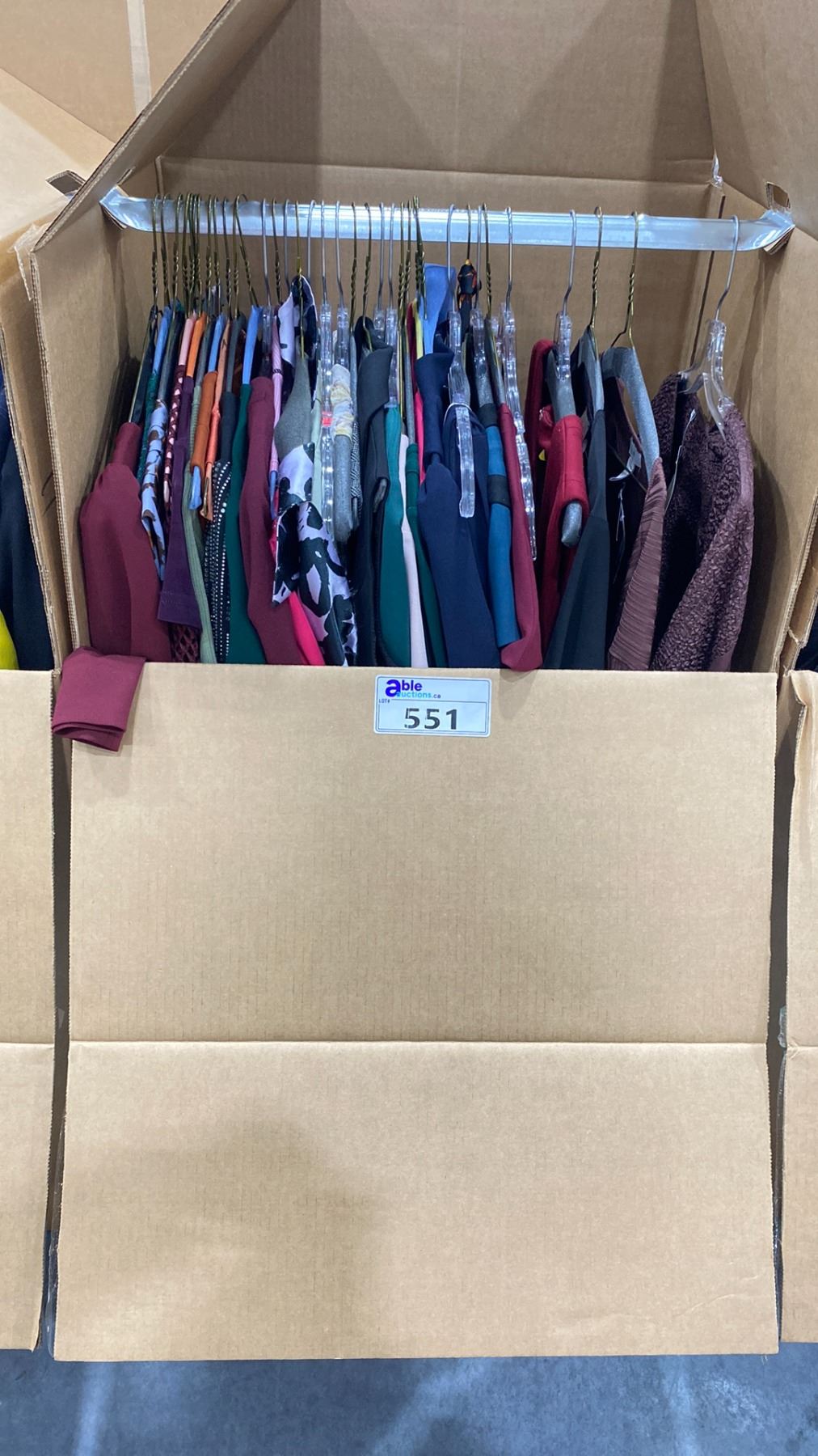 WARDROBE BOX OF ASSORTED CLOTHING (BOX AND ALL CONTENTS MUST BE TAKEN)