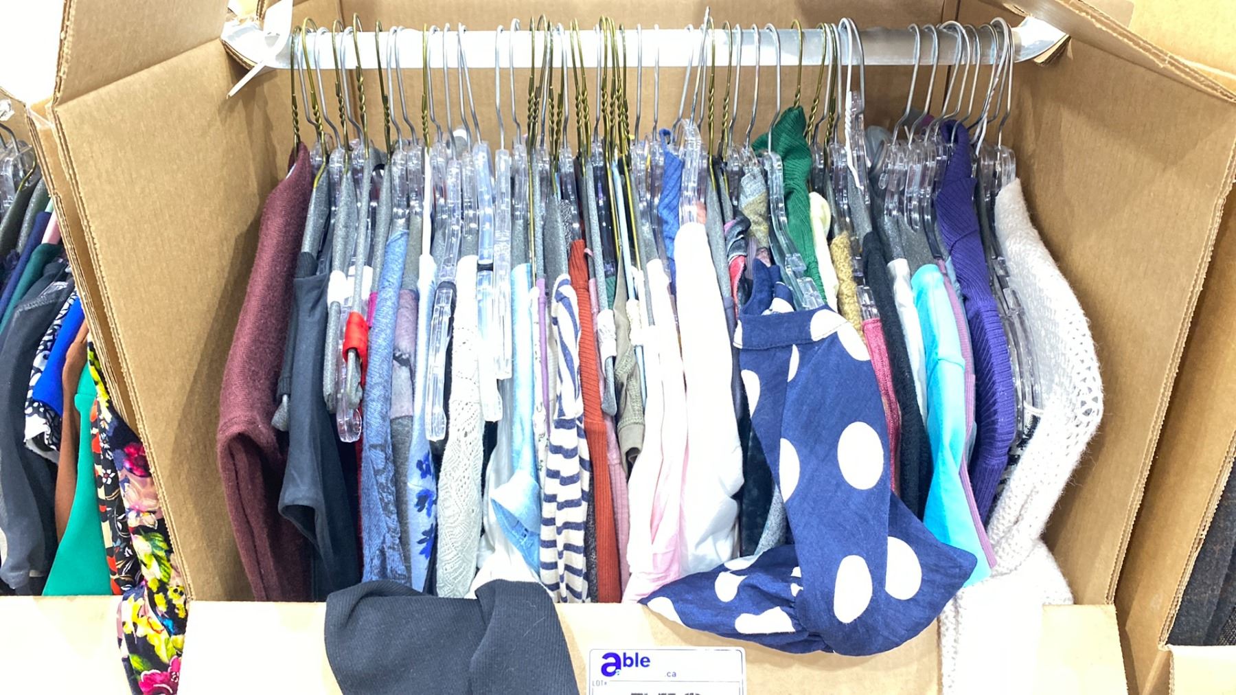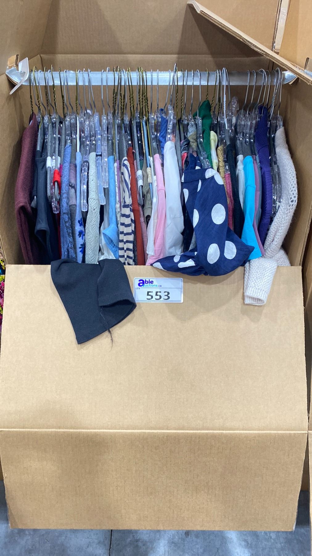 WARDROBE BOX OF ASSORTED CLOTHING (BOX AND ALL CONTENTS MUST BE TAKEN)