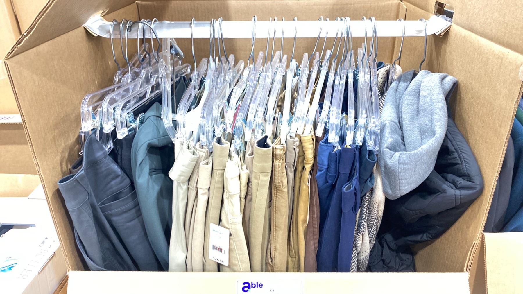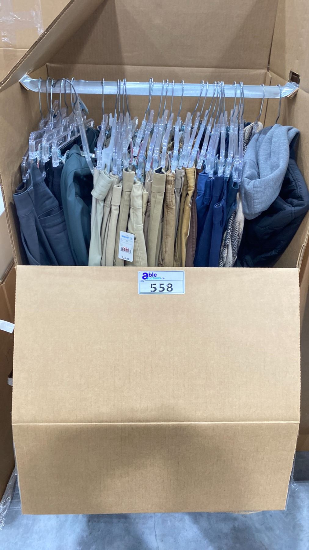 WARDROBE BOX OF ASSORTED CLOTHING (BOX AND ALL CONTENTS MUST BE TAKEN)