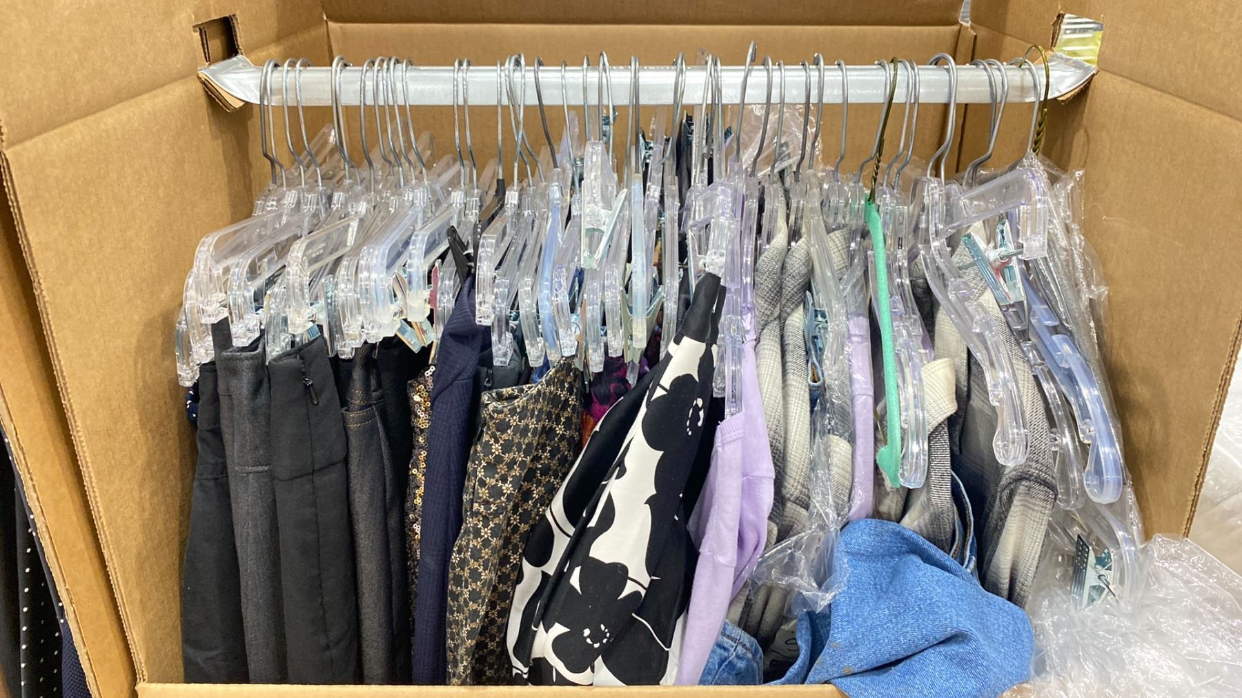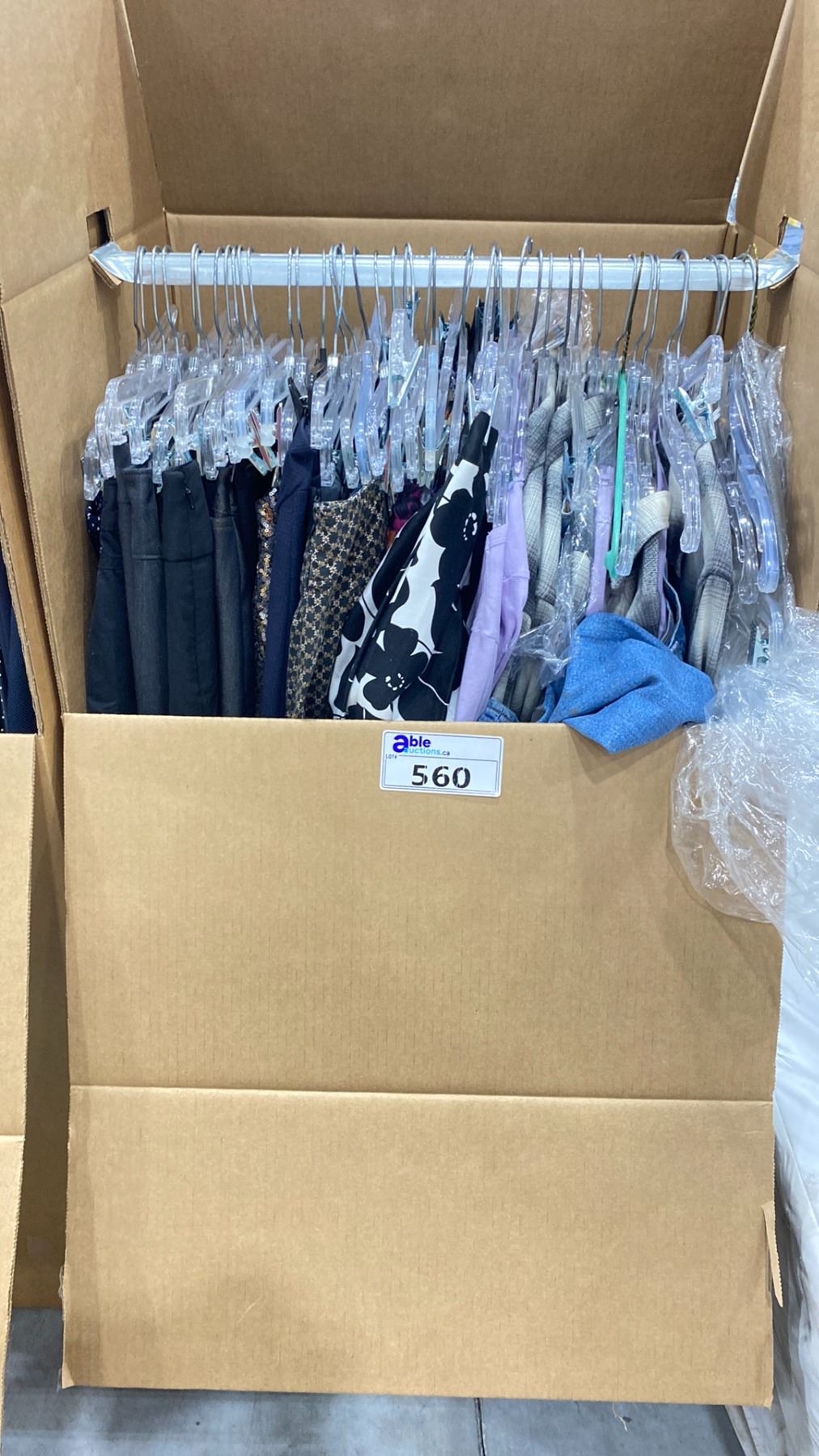 WARDROBE BOX OF ASSORTED CLOTHING (BOX AND ALL CONTENTS MUST BE TAKEN)