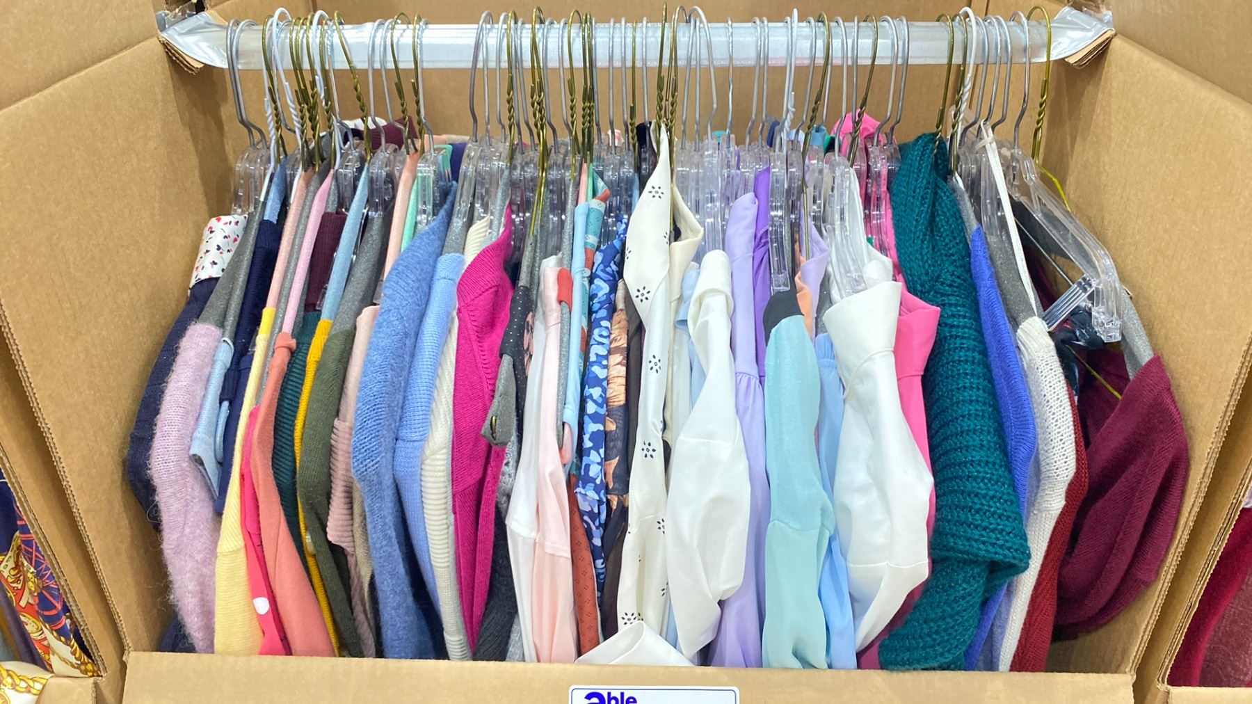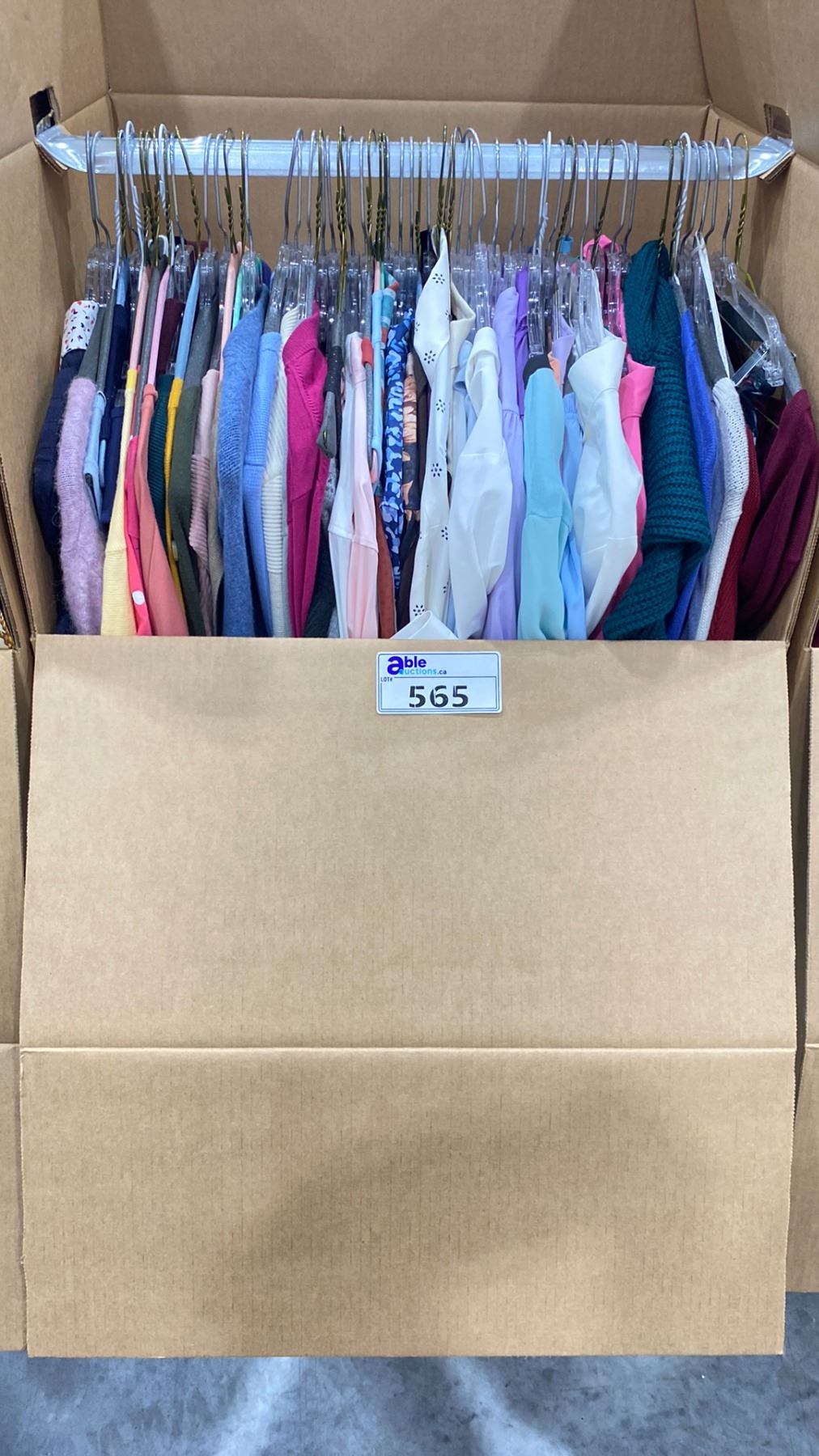 WARDROBE BOX OF ASSORTED CLOTHING (BOX AND ALL CONTENTS MUST BE TAKEN)