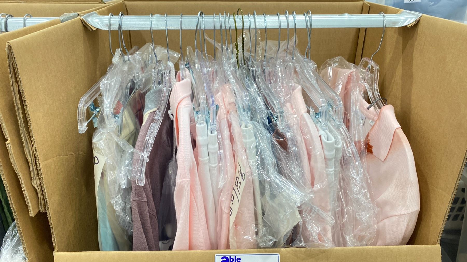 WARDROBE BOX OF ASSORTED CLOTHING (BOX AND ALL CONTENTS MUST BE TAKEN)